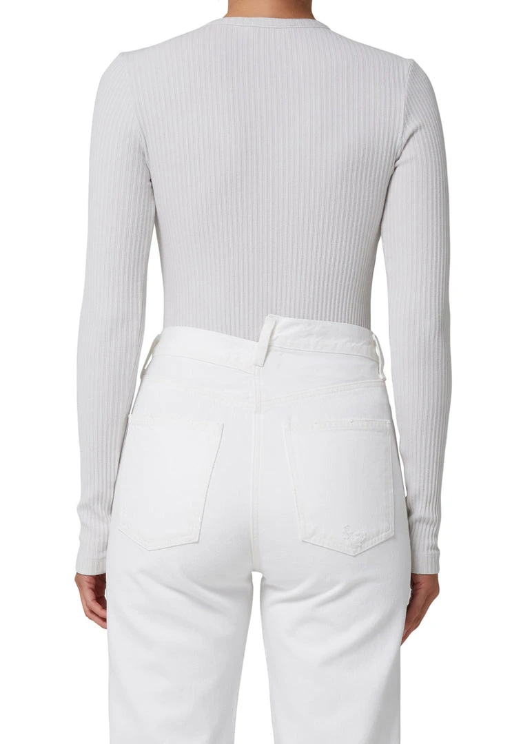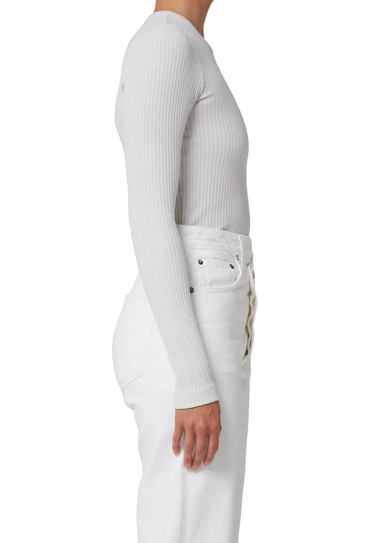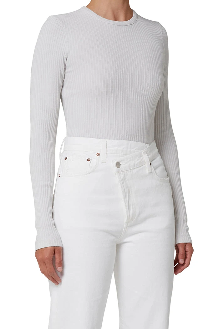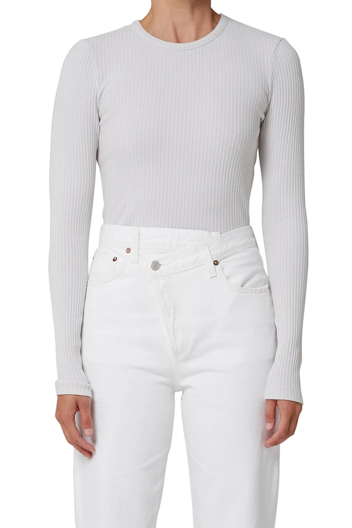 Agolde Alma shrunken crewneck ribbed cropped top in powder grey.
