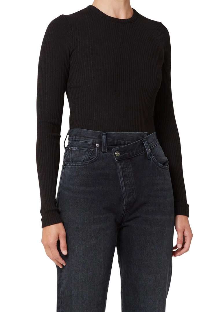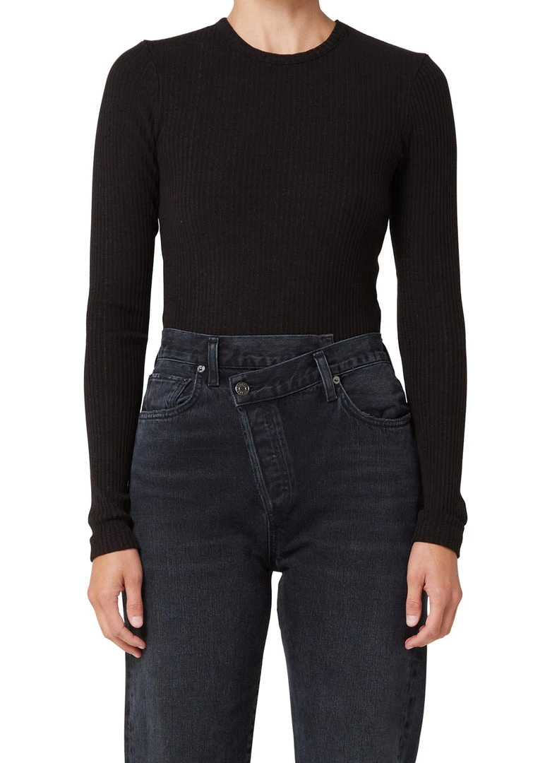 Agolde Alma shrunken crewneck ribbed cropped top in black.