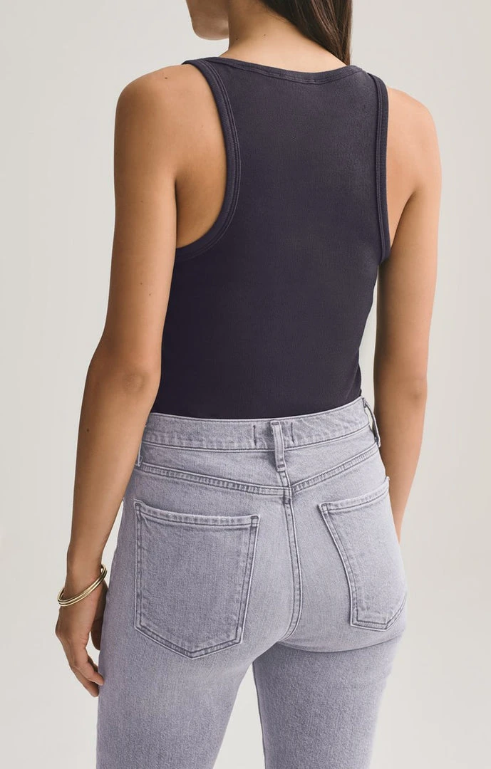 Agolde black ribbed high neck tank top. Ultra flattering, your new go-to. 90’s style rib tank features a square high neck.