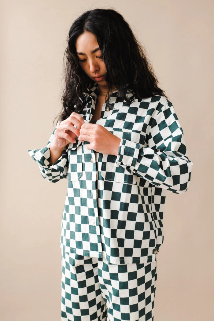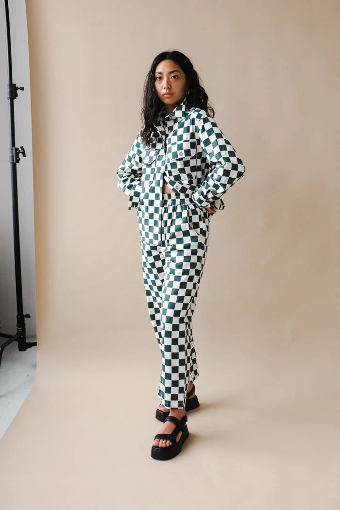 Dushyant Sophia long sleeve green chessboard jacket top.