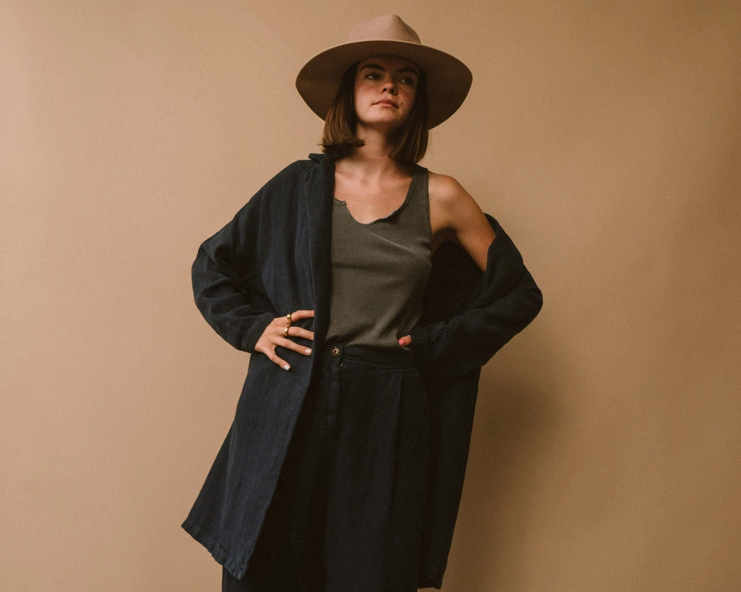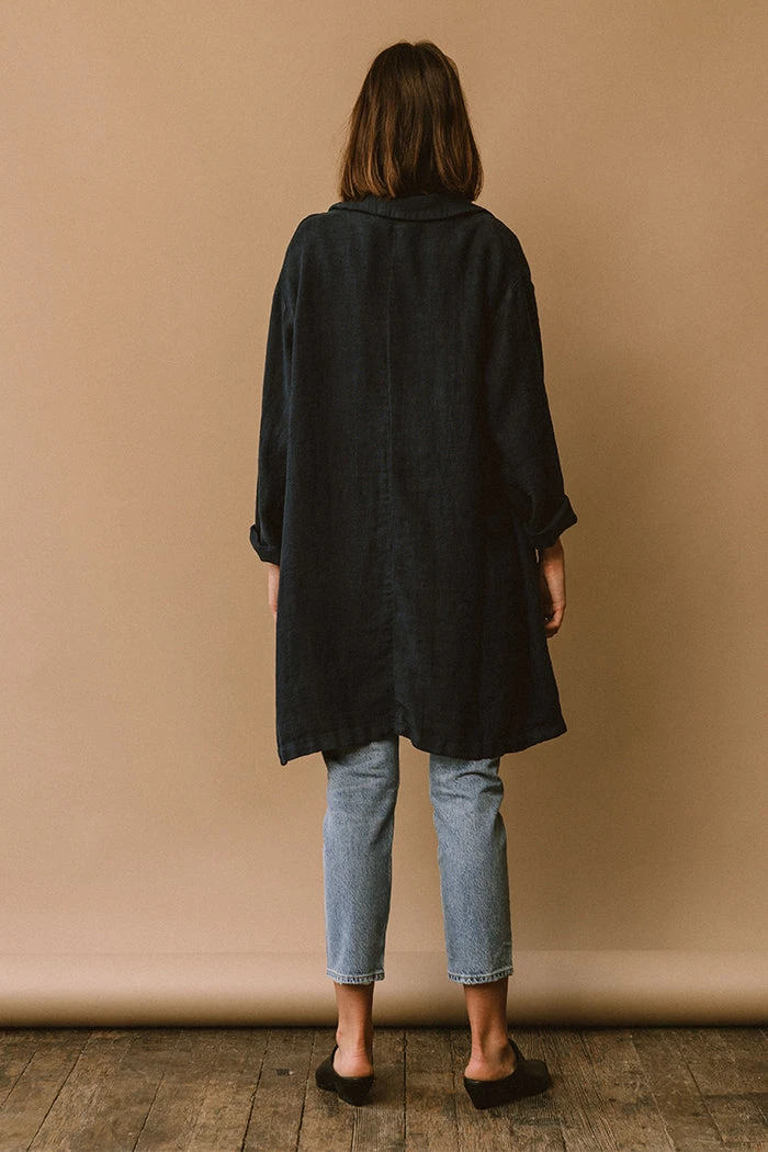 Filosofia Anna linen duster jacket. The Anna Duster Coat is crafted from 100% heavy linen and can be worn over most outfits. The sturdy yet soft fabric will envelope you in comfort as you go about your day.