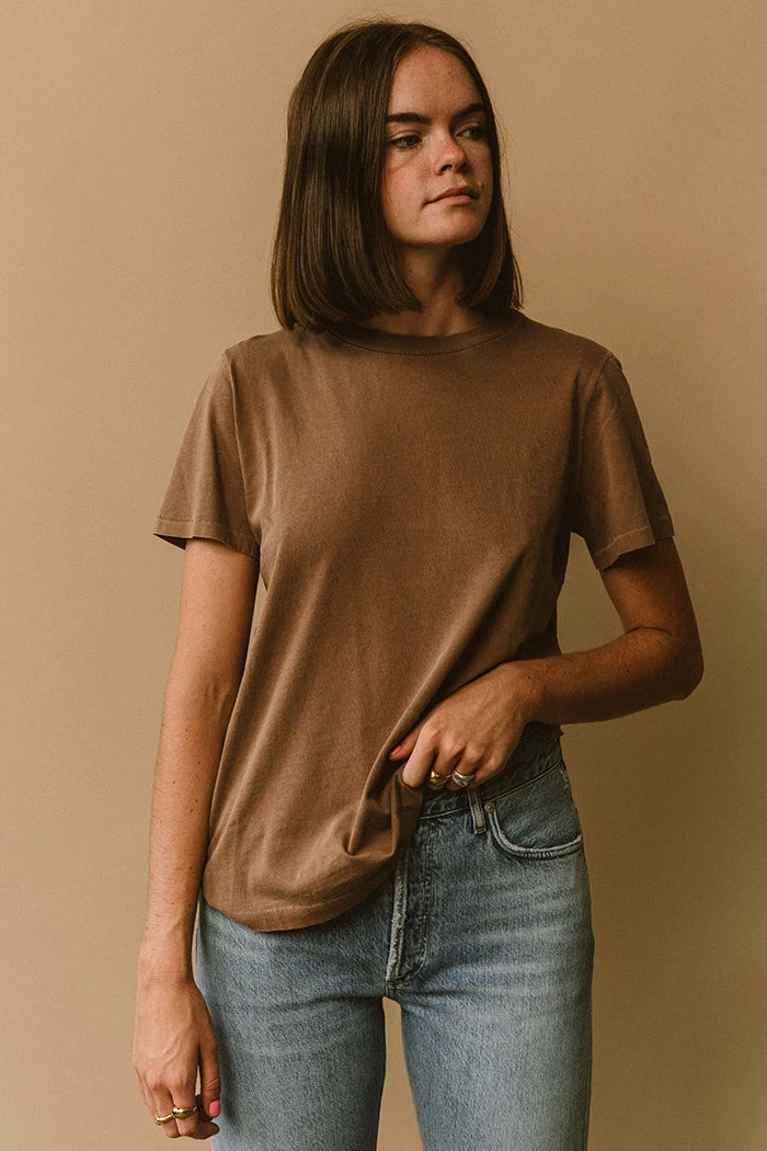 Model is 5’9 and wears a size small. Measurements are taken flat. XS Chest 17.5” Length 24.5”, S Chest 18.5” Length 25”, M Chest 19.5” Length 25.5”, L Chest 20.5” Length 26”.
