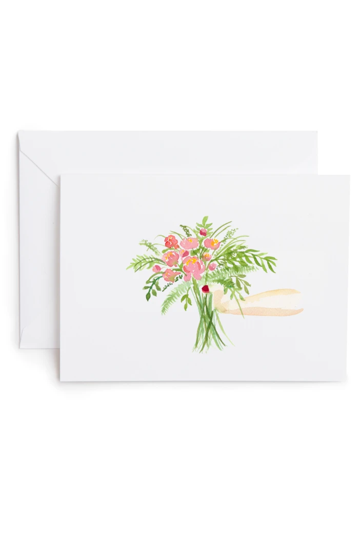 Watercolor gift of flowers greeting card by Good Sheila. This sweet card is 5×7, printed on quality uncoated paper and comes with a white envelope.