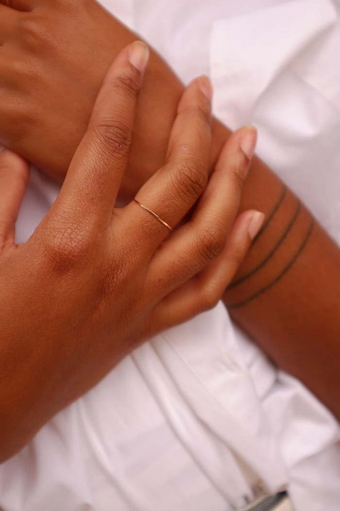 Ultra thin hammered stacking ring. This dainty everyday ring that will last you years. Here at P+R we can not get enough of this ring. It is perfect as a midi ring in a size 2-4.