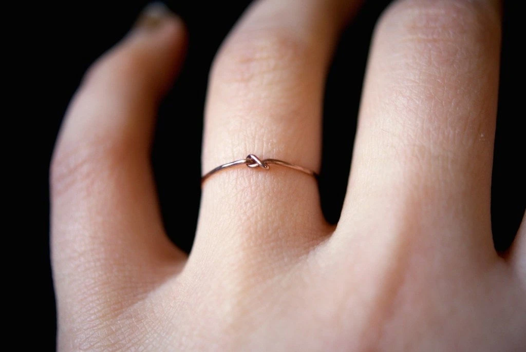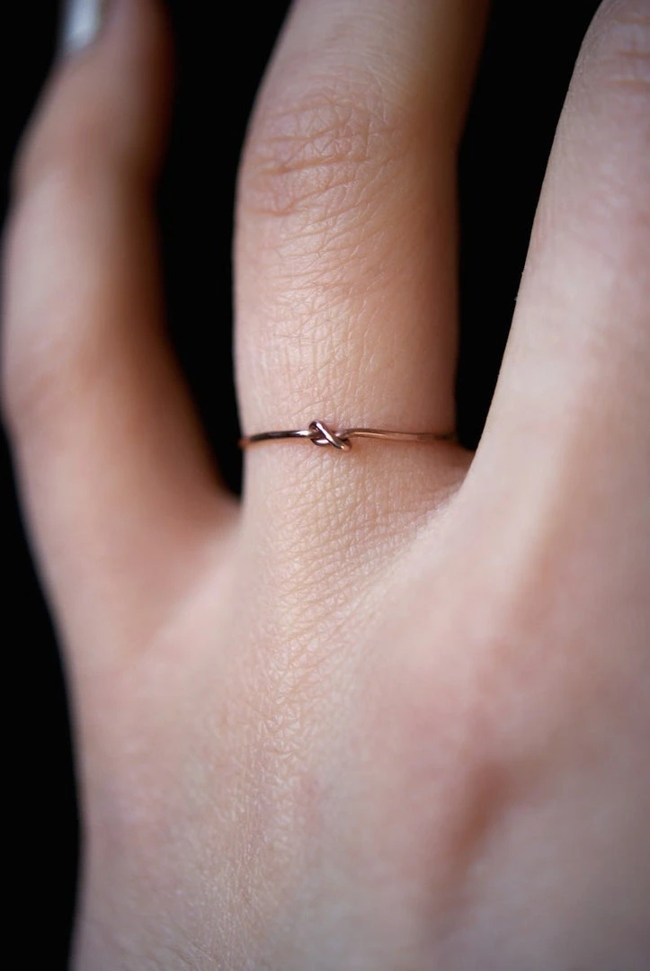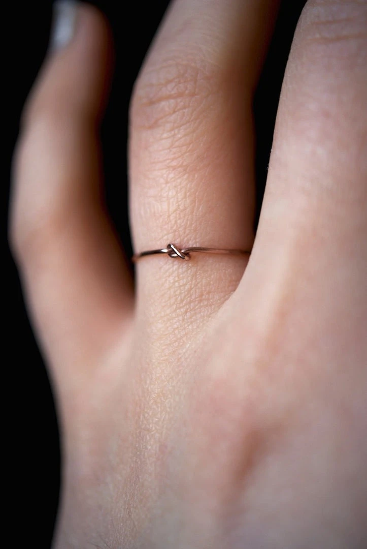 Tiny closed knot ring in hammered rose gold. An elegant and simple addition to your ring collection.