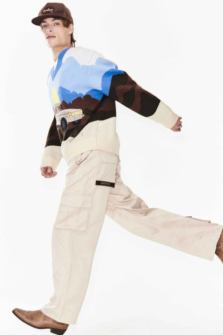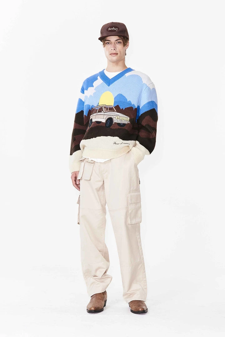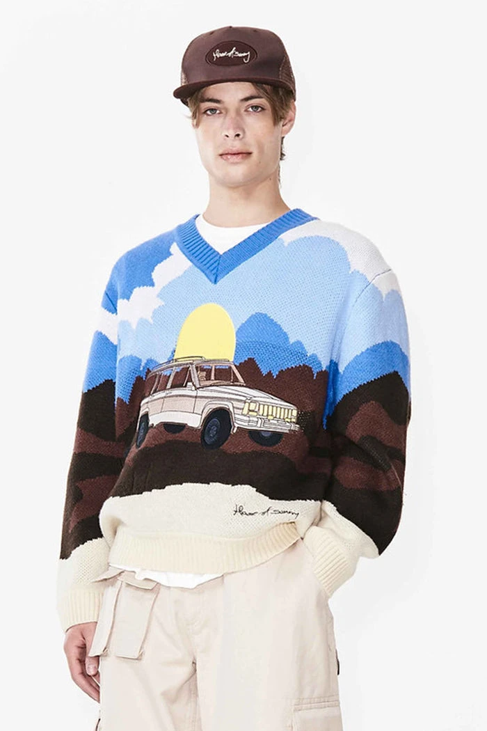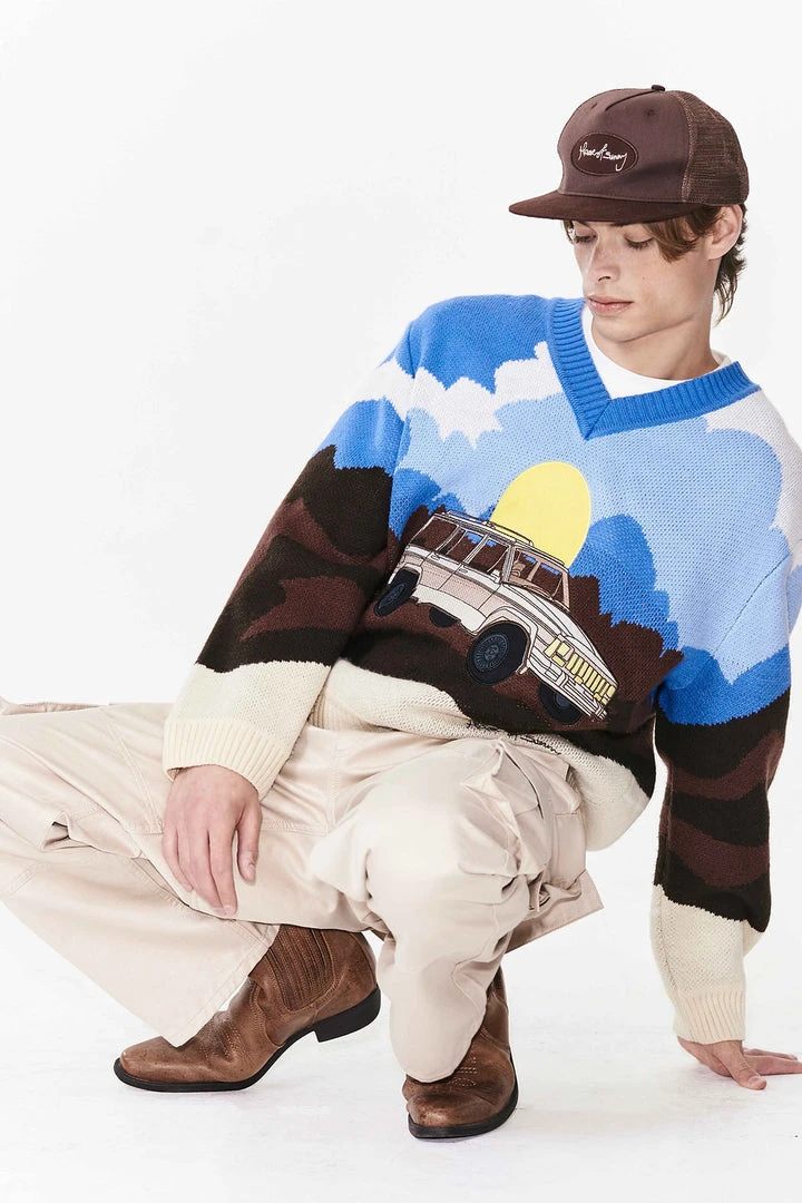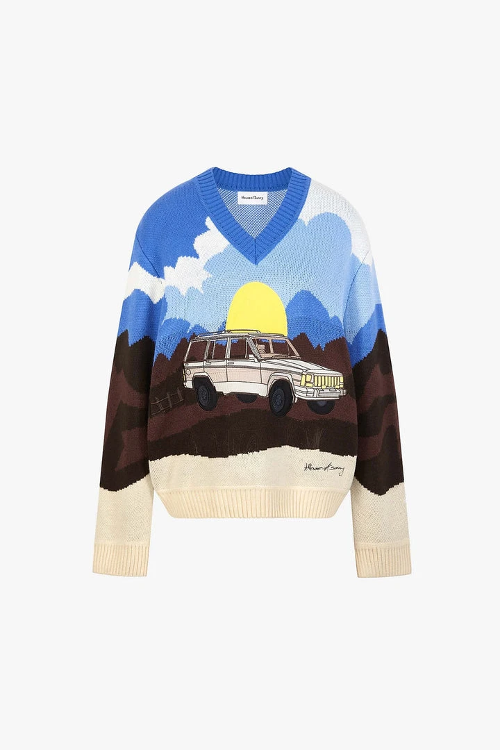 House of Sunny On the Road Again oversized knit v-neck sweater.