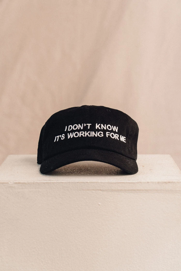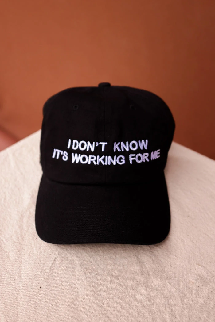 The “I don’t know it’s working for me” embroidered adjustable hat.