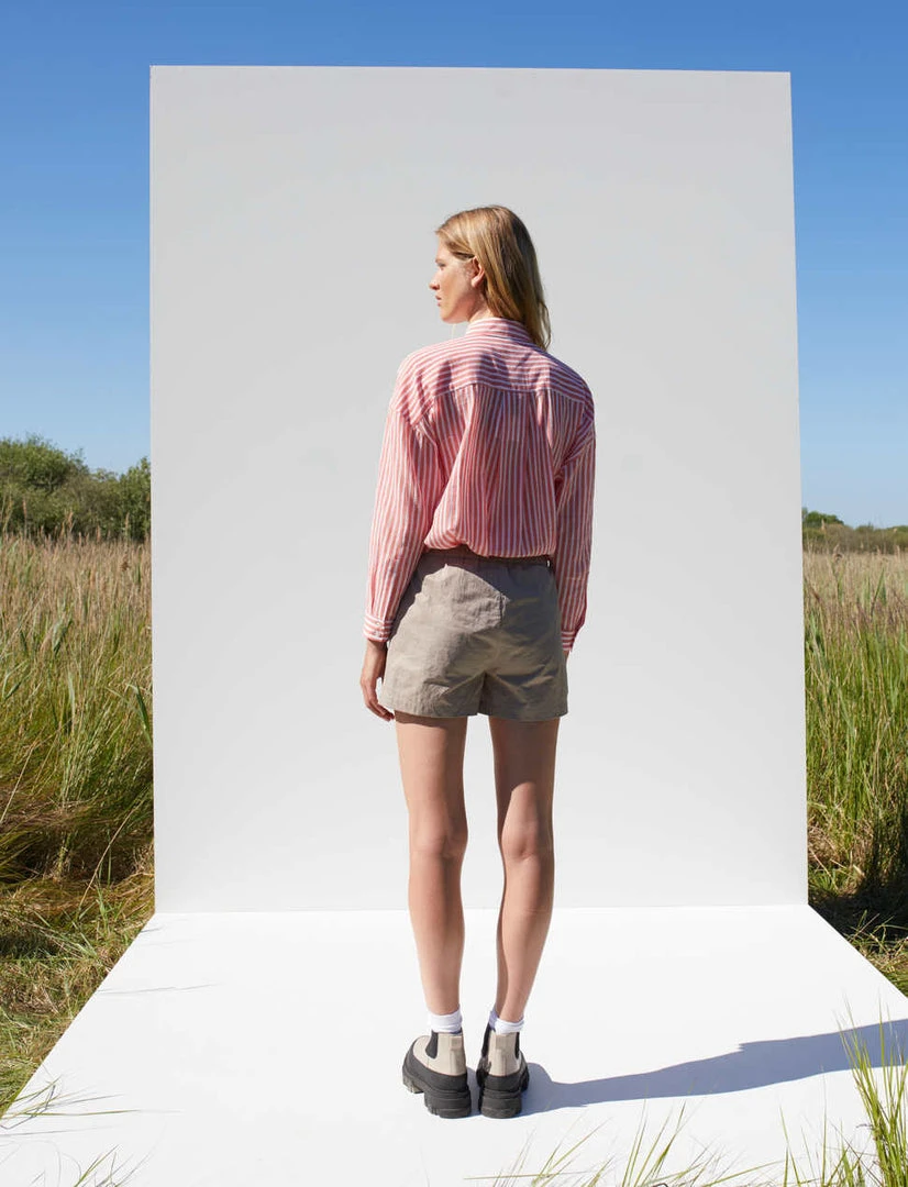 Just Female Lucky shorts in moon rock khaki tan. Stretch waistband and side pockets.