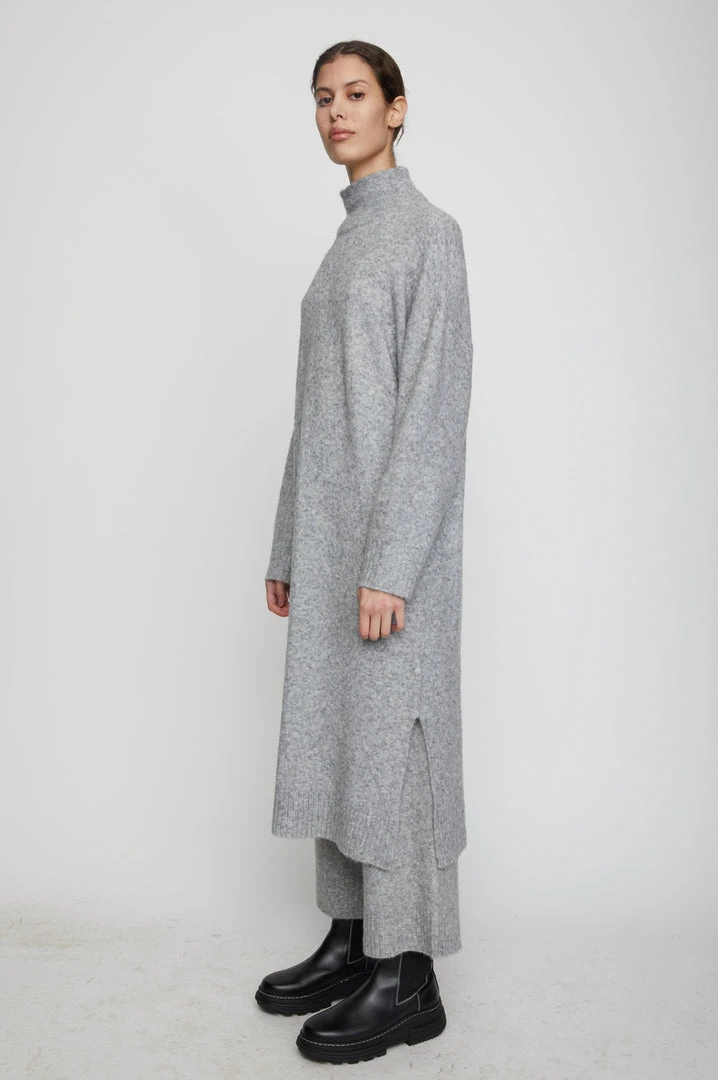 Just Unite knit turtleneck dress in soft wool heather grey.
