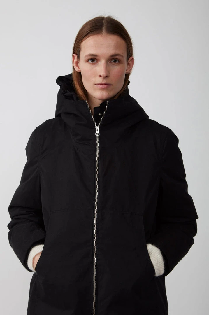 Just Female Steal coat is a 3-in-1 winter jacket with hood has a shell of coated nylon and cotton, which is both wind and waterproof. The jacket fastens with a two-way zip and has adjustable elastic in the waist and bottom. The inner jacket is made from a soft polyester material, which is lined with down and feathers. This jacket has a hood, fastens with poppers and has a rib trim by the wrists.