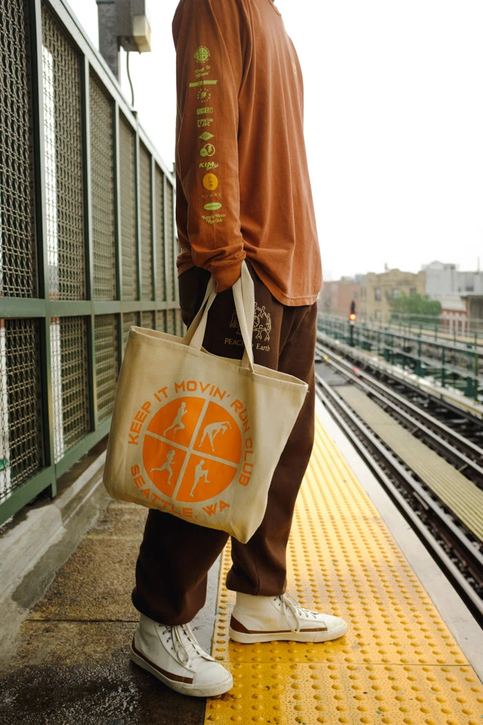 Keep it movin’ warm up natural canvas tote.