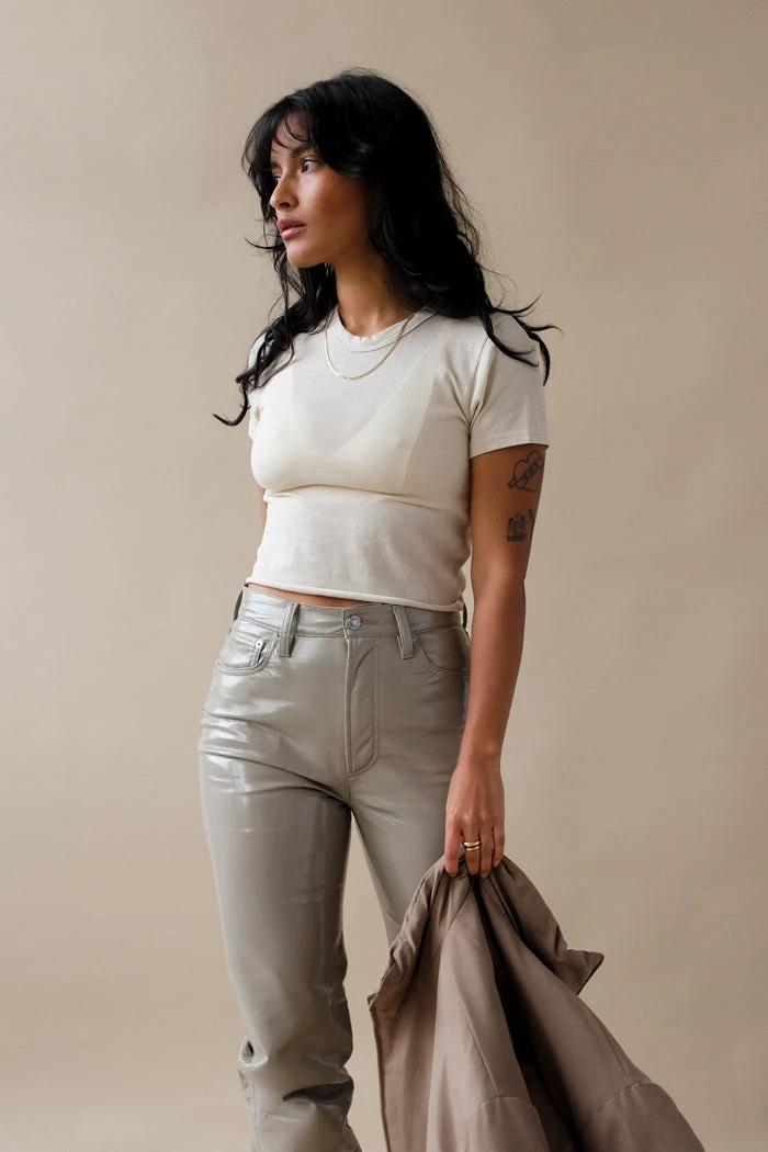 Lacausa baby Smith tee in sea salt light tan. This super soft shrunken tee is made of an organic cotton, recycled poly blend that gives it a slightly heathered look and the softest handfeel.