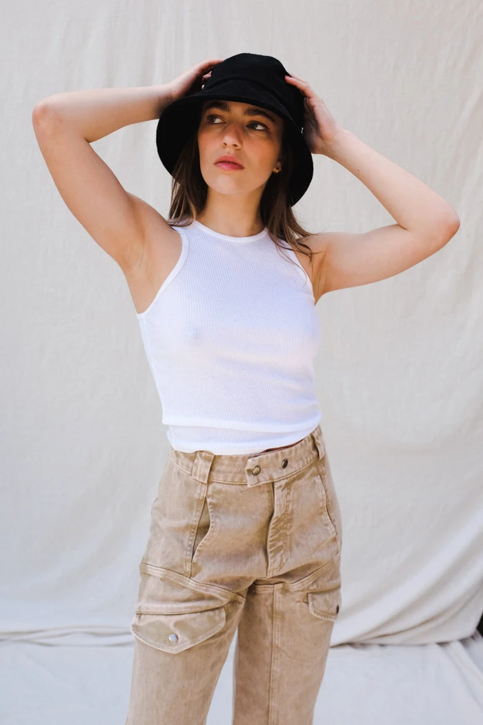Camel PU Vegan leather bucket hat