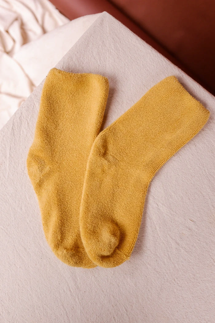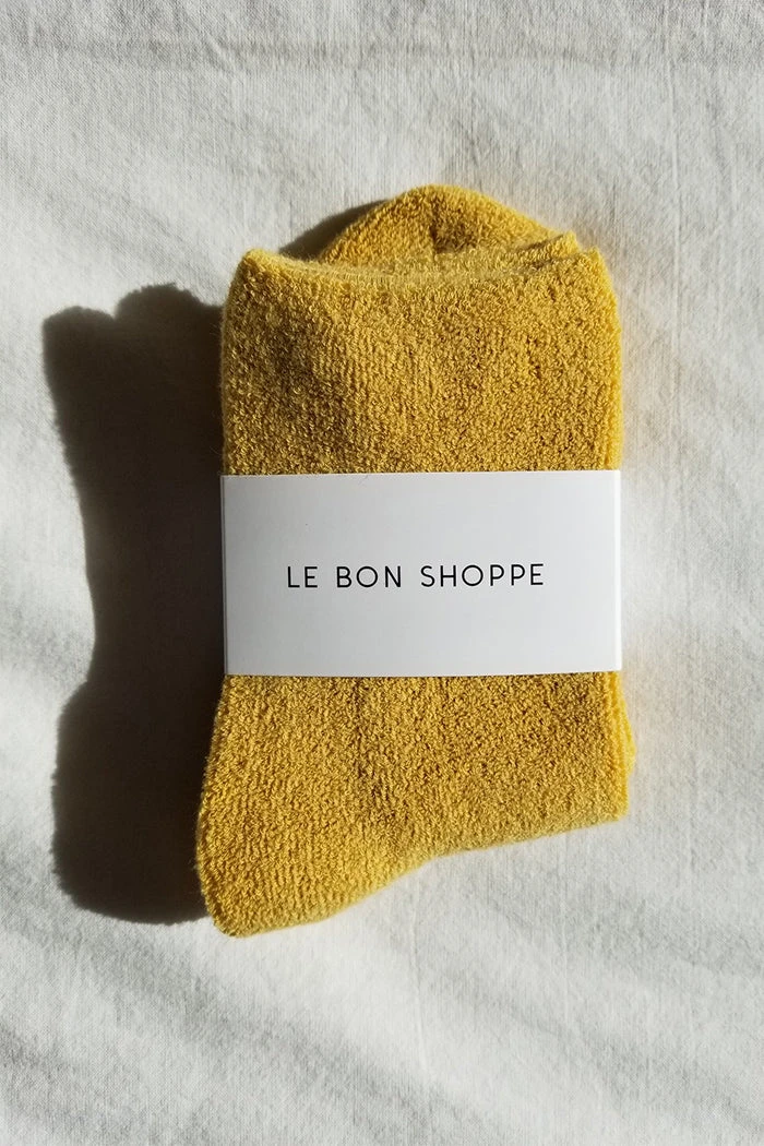 Le Bon Shoppe comfy, cozy, terry cloth Cloud socks in deep honey yellow.
