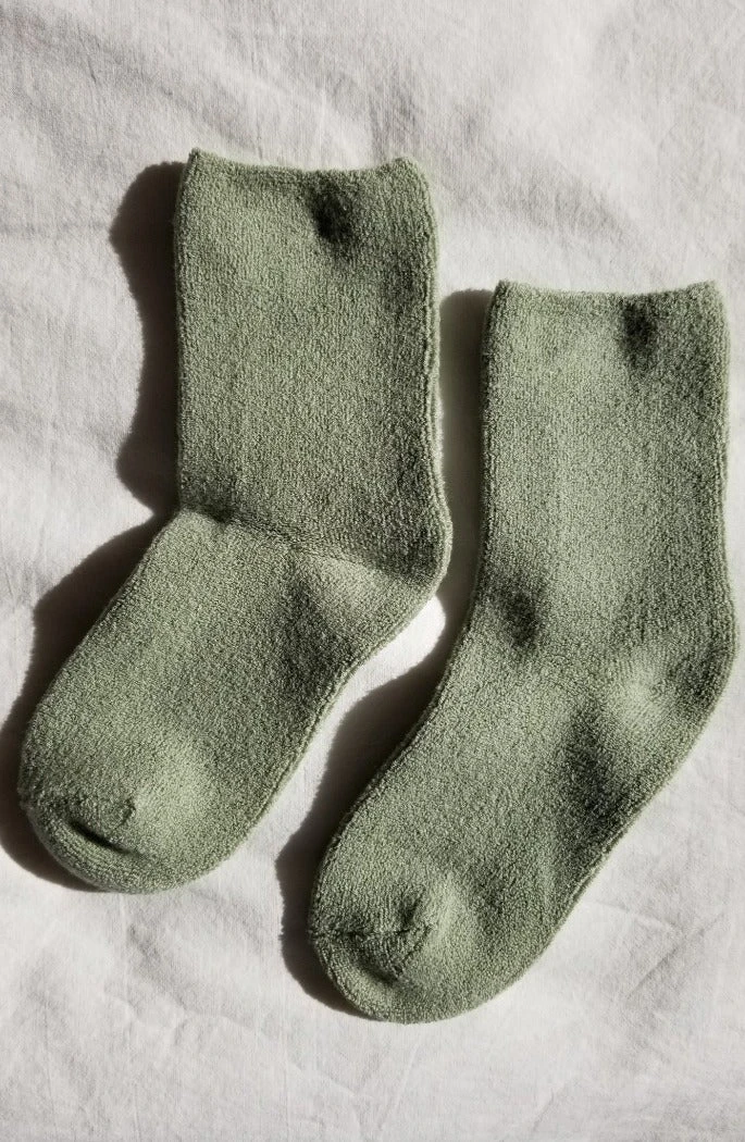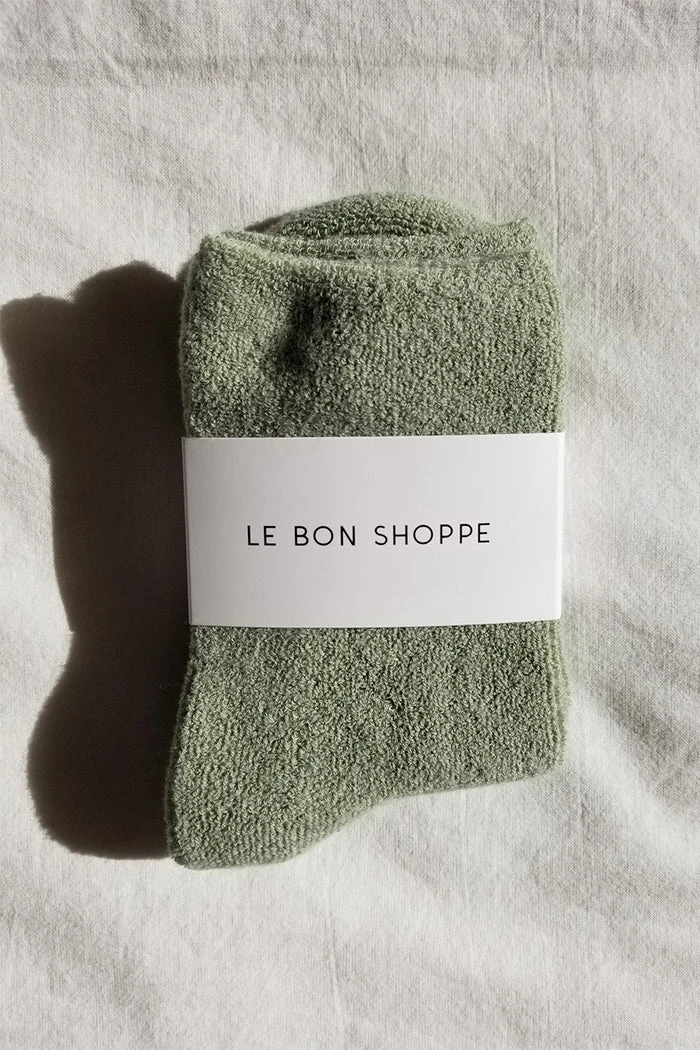 Le Bon Shoppe comfy, cozy, terry cloth Cloud socks in light match green color.