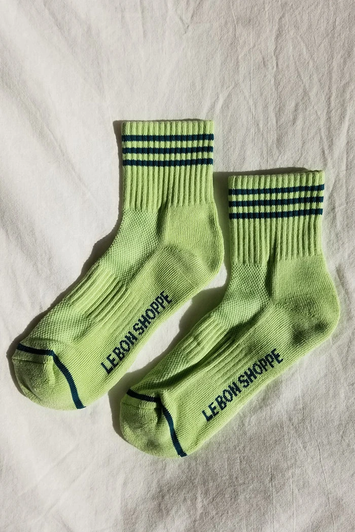 Le Bon Shoppe Girlfriend socks in pistachio lime green. Crew version of one of our bestselling Boyfriend Socks!