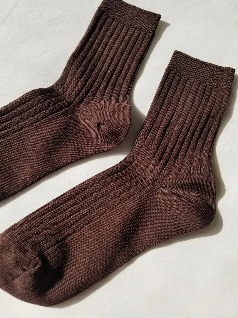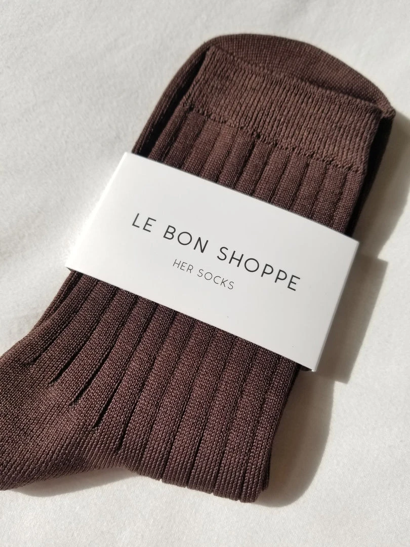 Le Bon Shoppe Her socks perfect height knit rib socks in coffee.