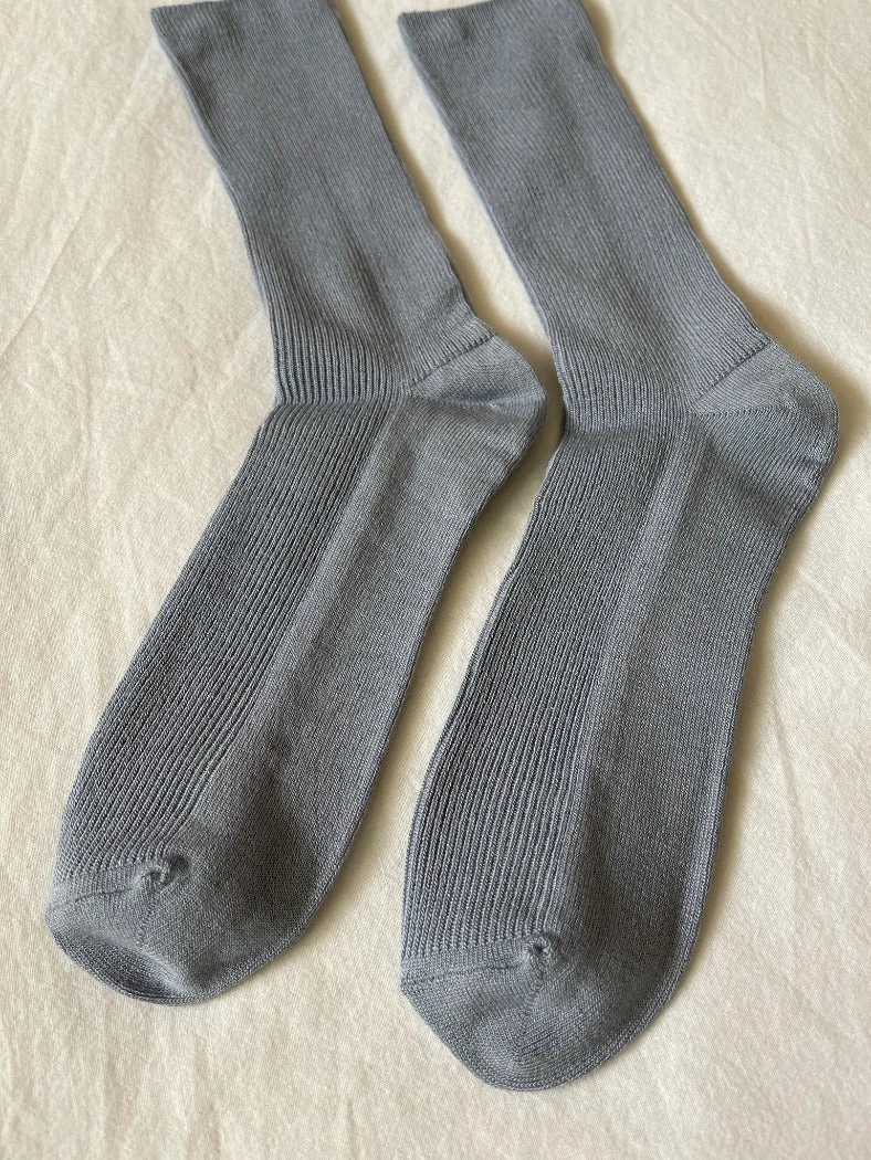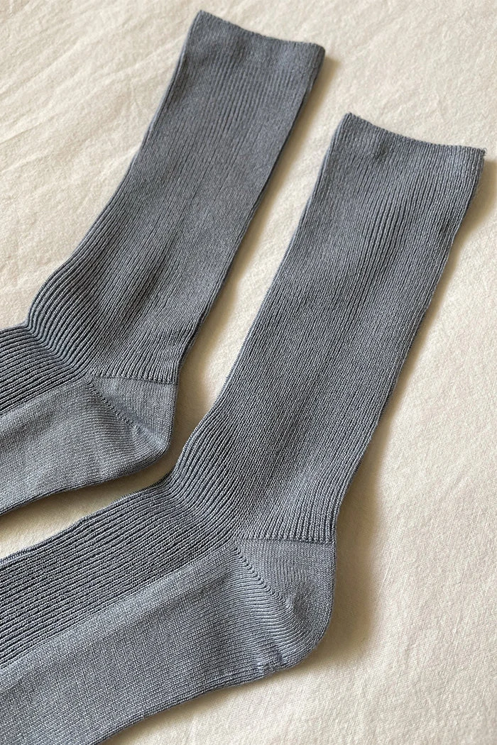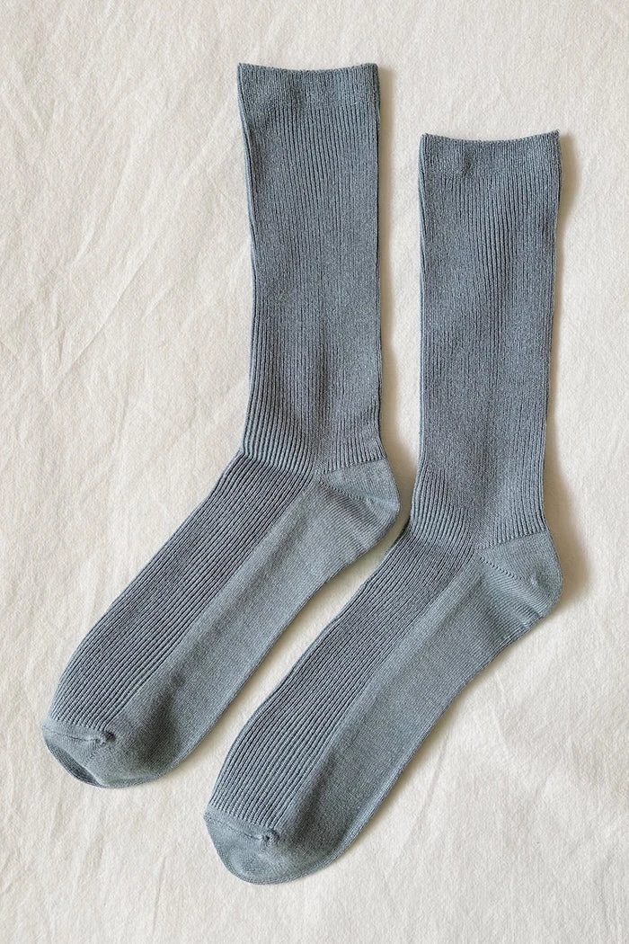 Le Bon Shoppe Trouser socks in blue bell dusty light blue. Long, soft, luxurious leg warmer socks, scrunch down or pull up.