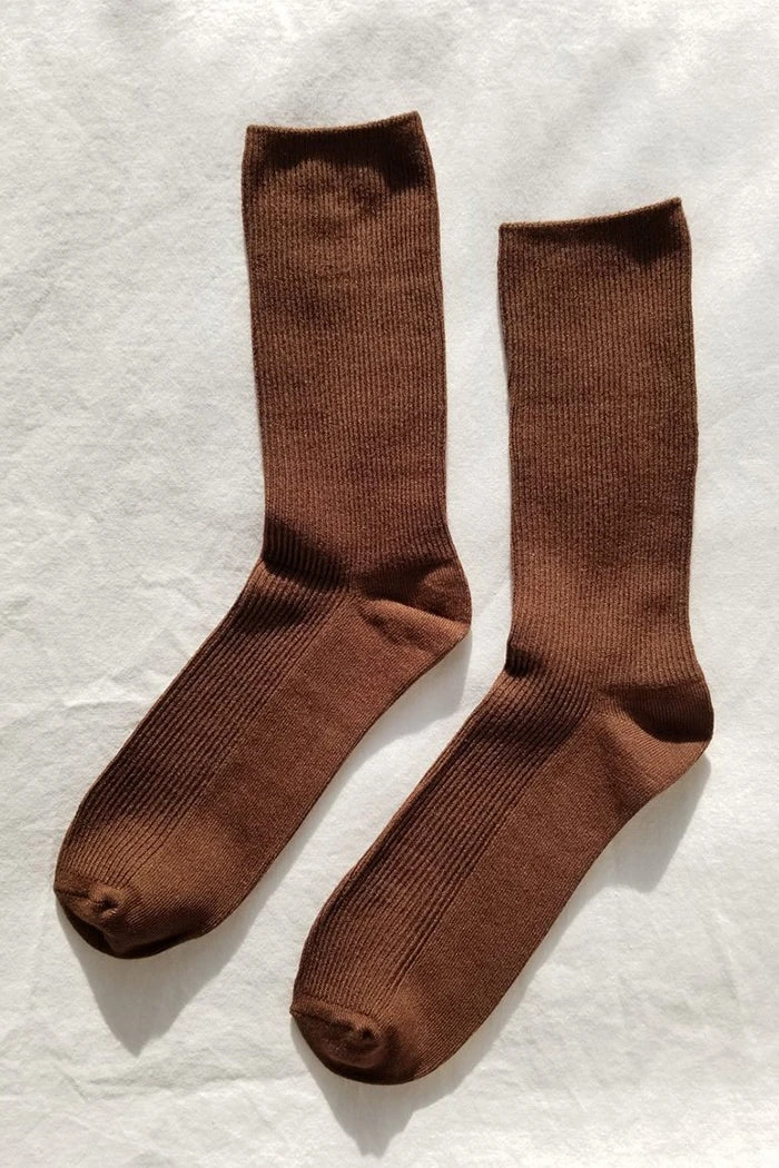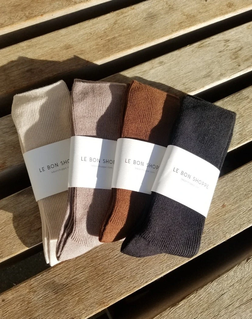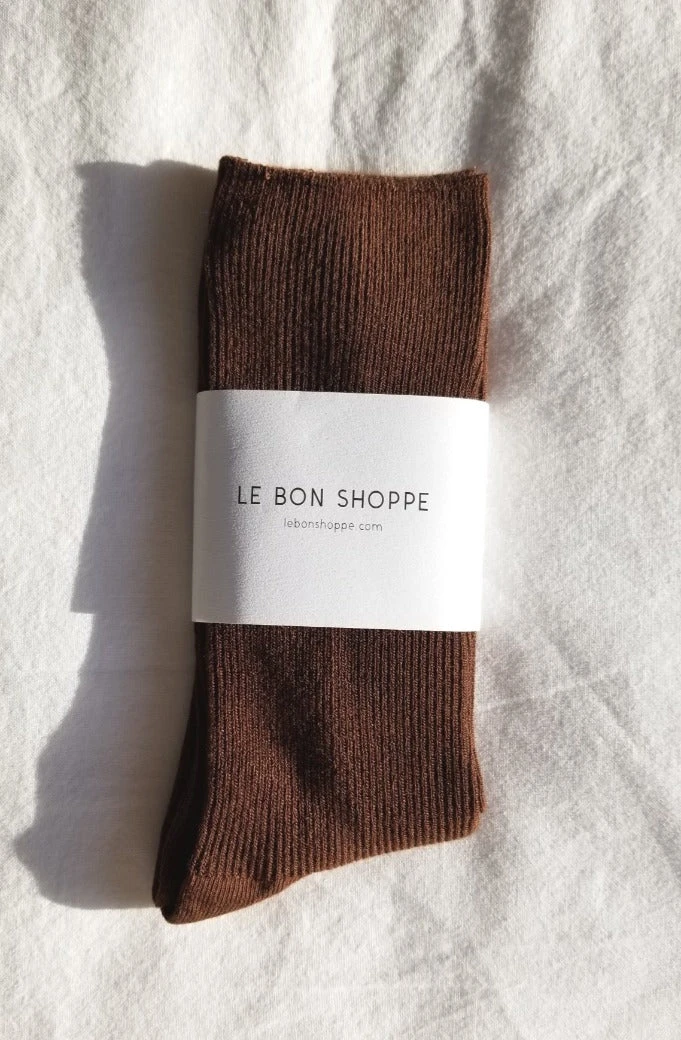 Le Bon Shoppe Trouser socks in dijon rich brown. Long, soft, luxurious leg warmer socks, scrunch down or pull up.