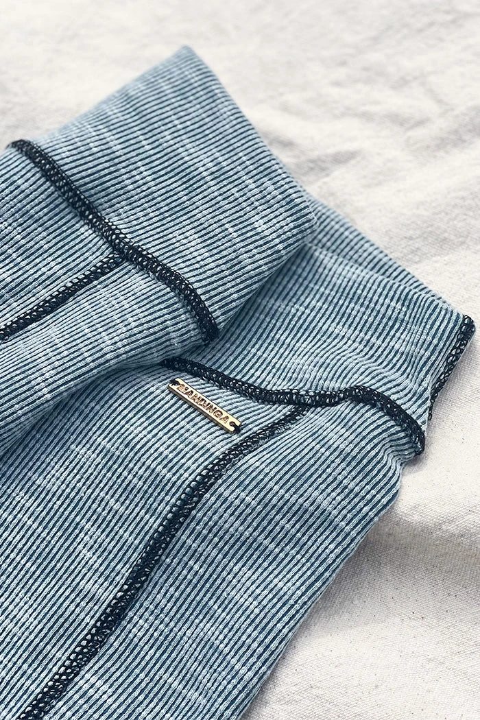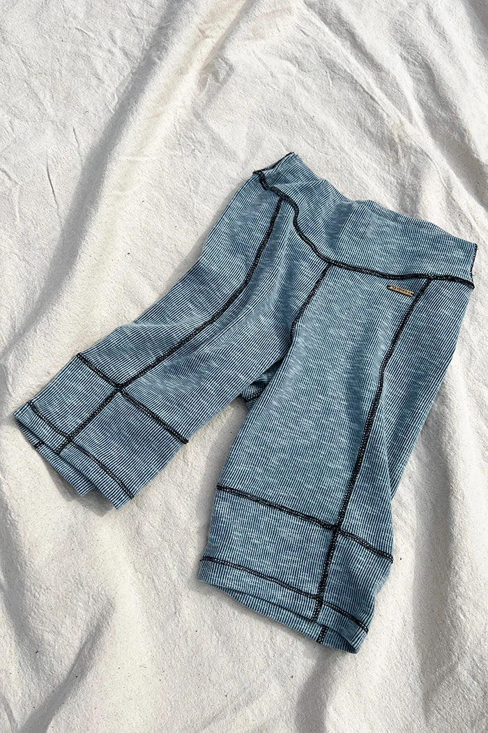 Mandinga lock biker shorts in heathered blue rib soft material.