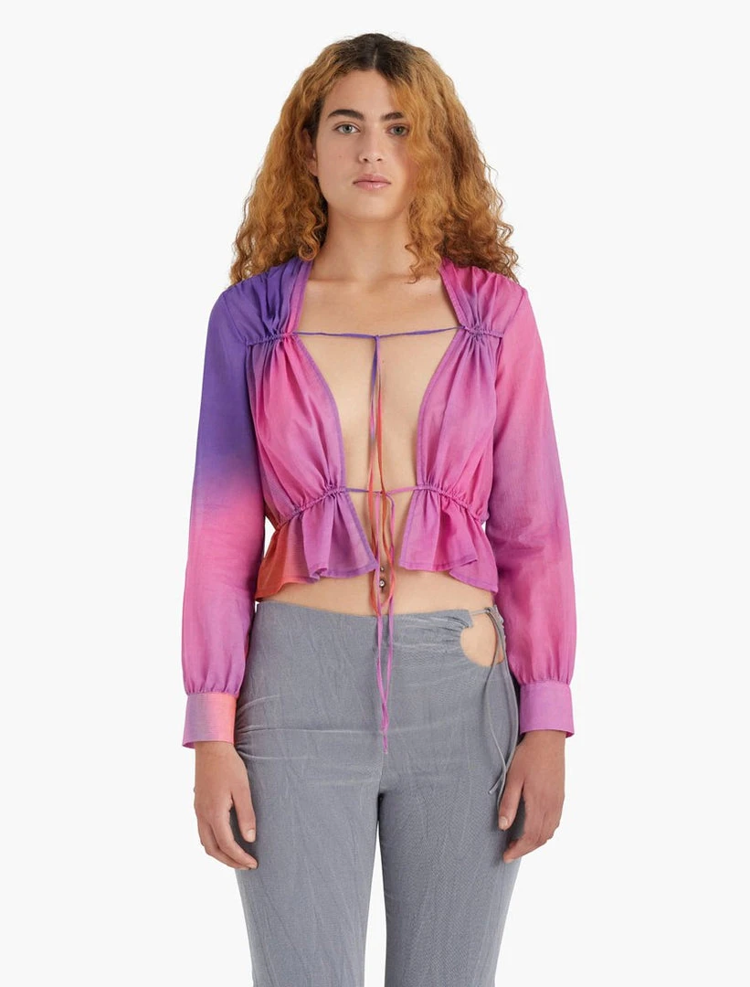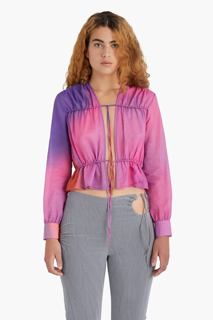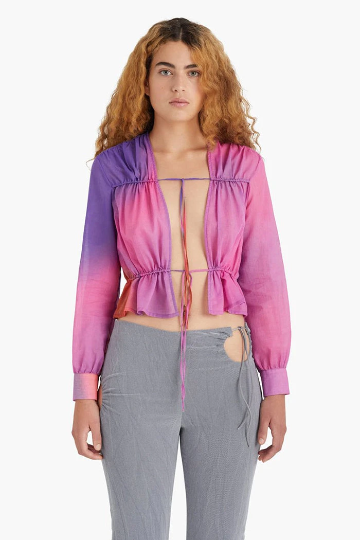Paloma Wool Steina top. Softly puckered shirt top with center fastening.