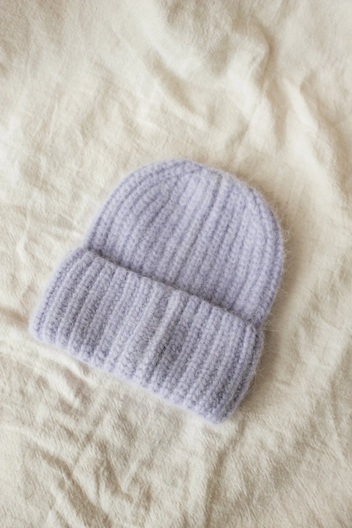 Thick knit soft Cole beanie in beautiful light pastel purple.