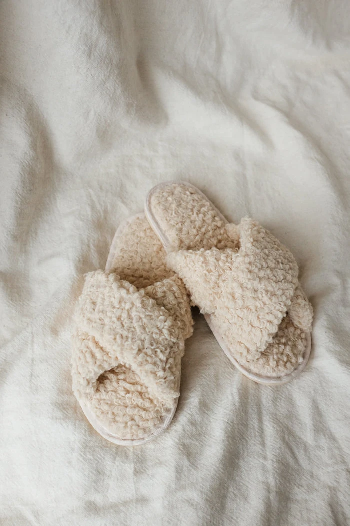 PIPE AND ROW CREAM SHEARLING SLIPPERS NEW IN