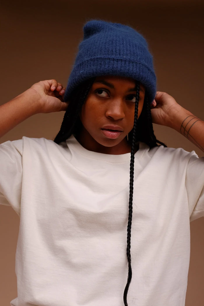 Smith knit blue beanie is the perfect fuzzy beanie for the winter.