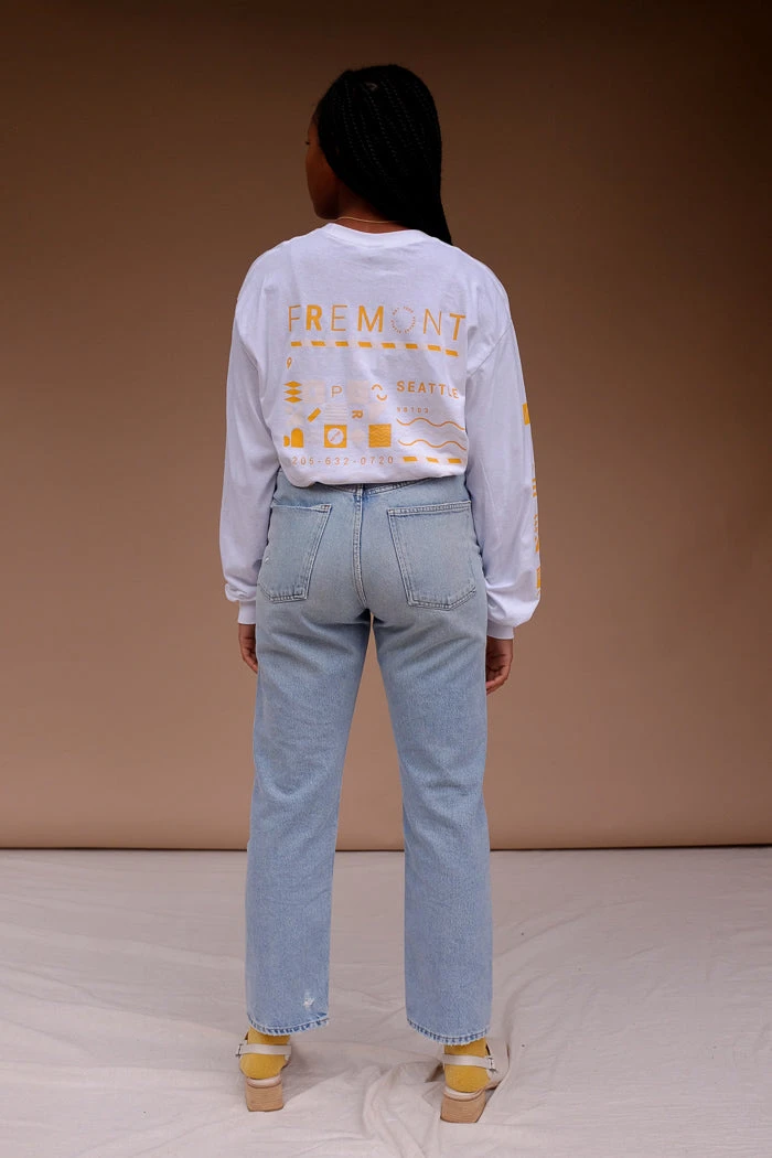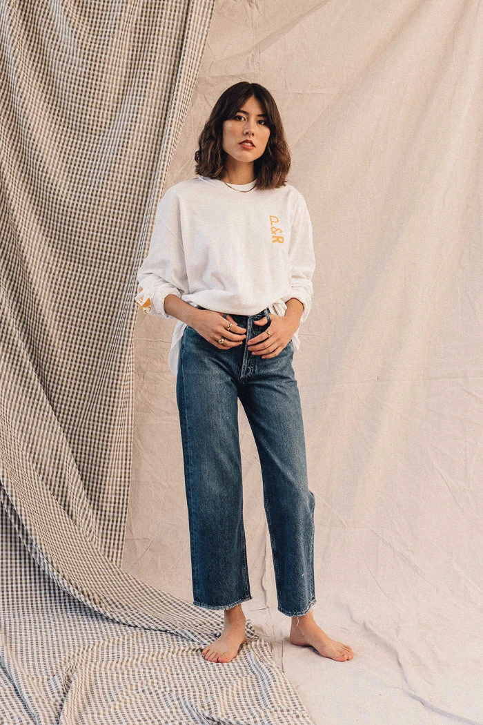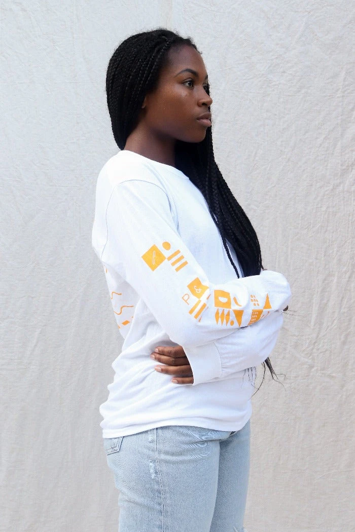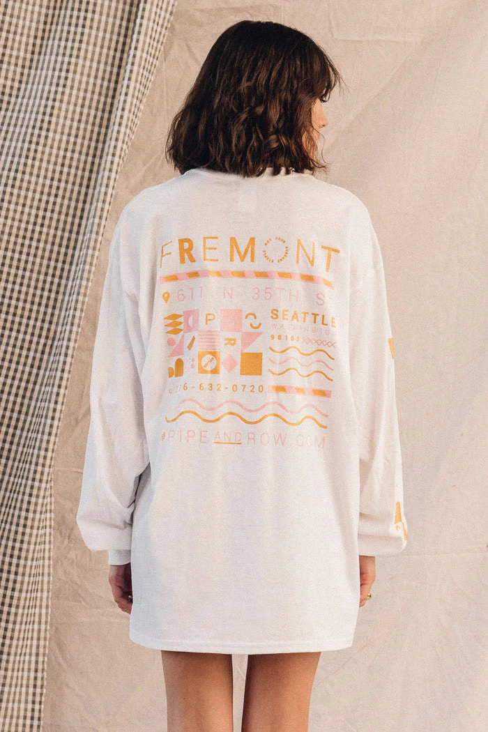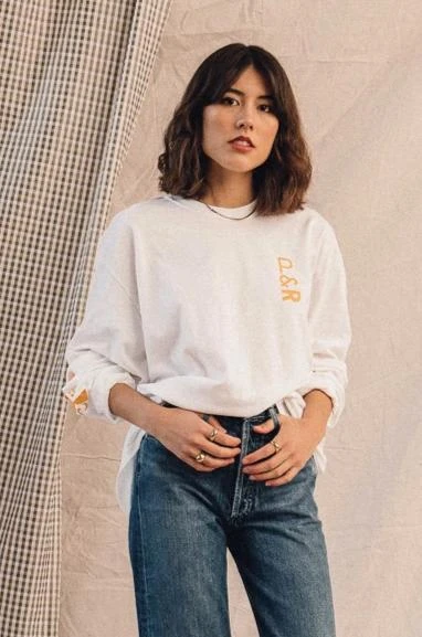 P&R long sleeve logo tee. Small front P&R logo, design down one sleeve, and back.
