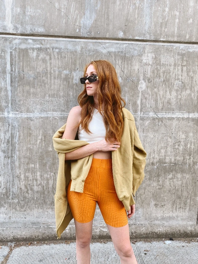 Made with upcycled fabrics. 95%rayon, 5% spandex.