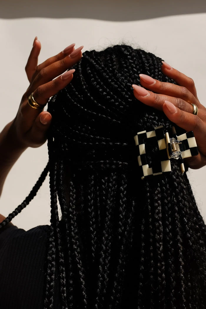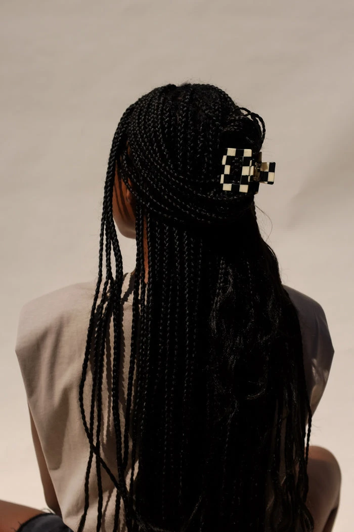 Small square hair claw in black and white checker.
