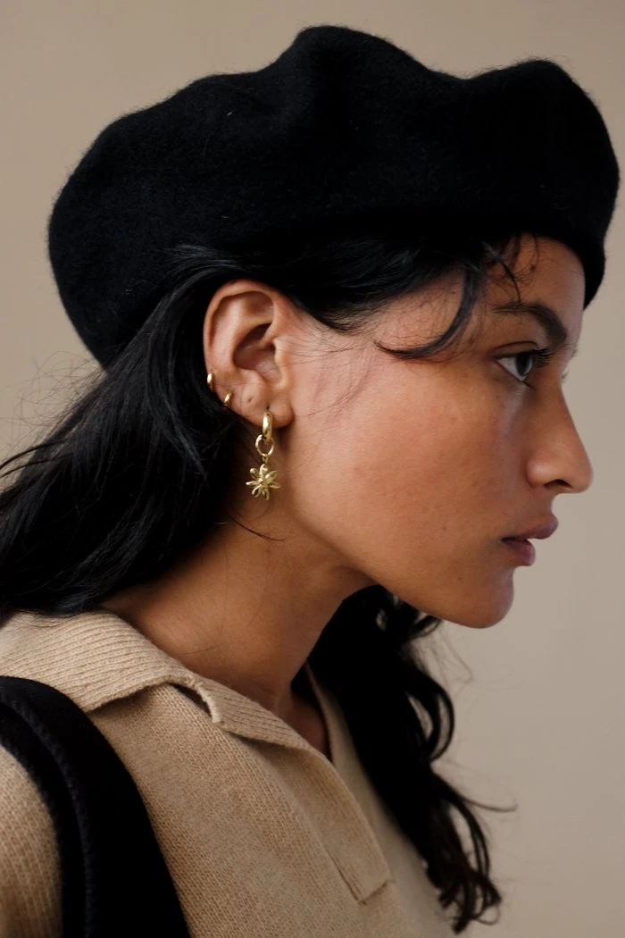 Wool beret hat in periwinkle blue.