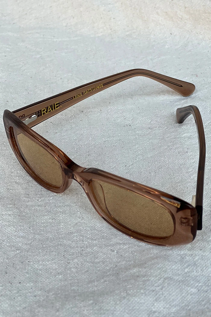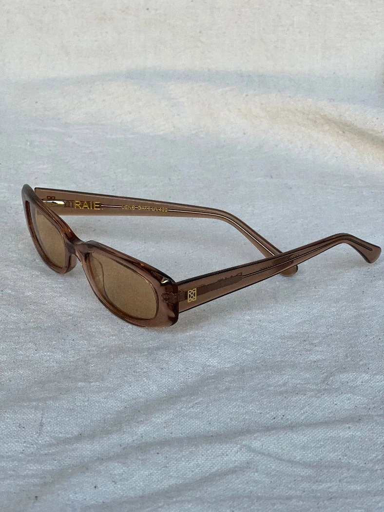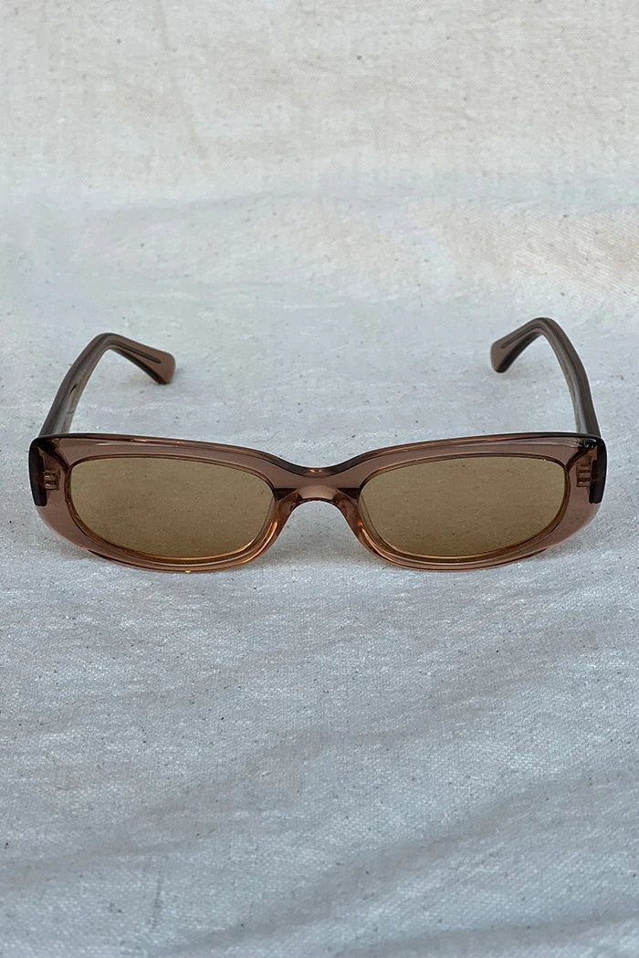 Raie eyewear Jacquie sunglasses in translucent fawn. She’s feminine, flirty and seductive. This micro shade is exceptional when it comes to people watching. Weather forecast? Sunny with a chance of 1996.