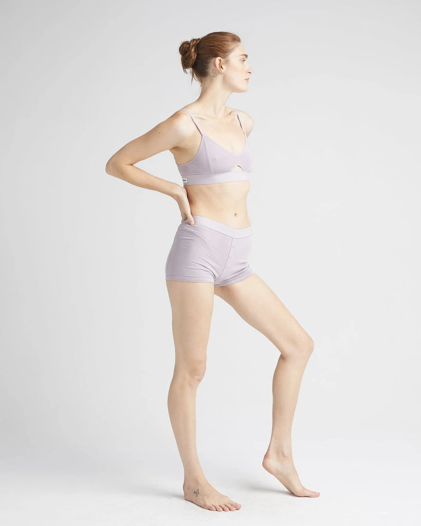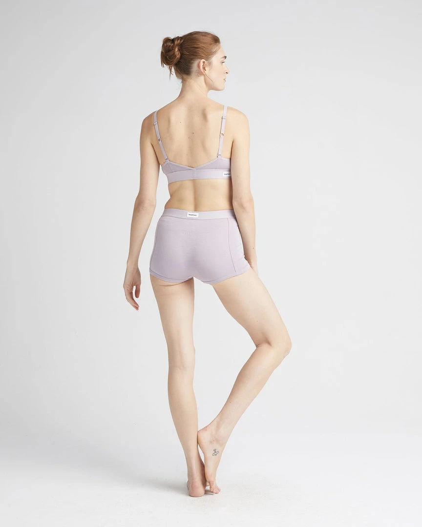 Richer Poorer amethyst smoke boxer briefs. Soft elastic waistband, faux snap detail at front, ultra-soft modal cotton blend, shrink resistant.