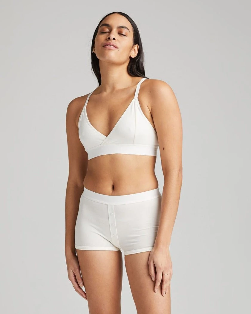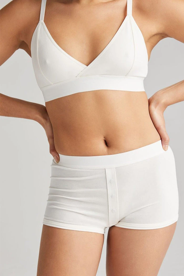 Richer Poorer bone boxer briefs in bone. Soft elastic waistband, faux snap detail at front, ultra-soft modal cotton blend, shrink resistant.