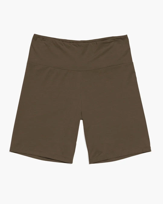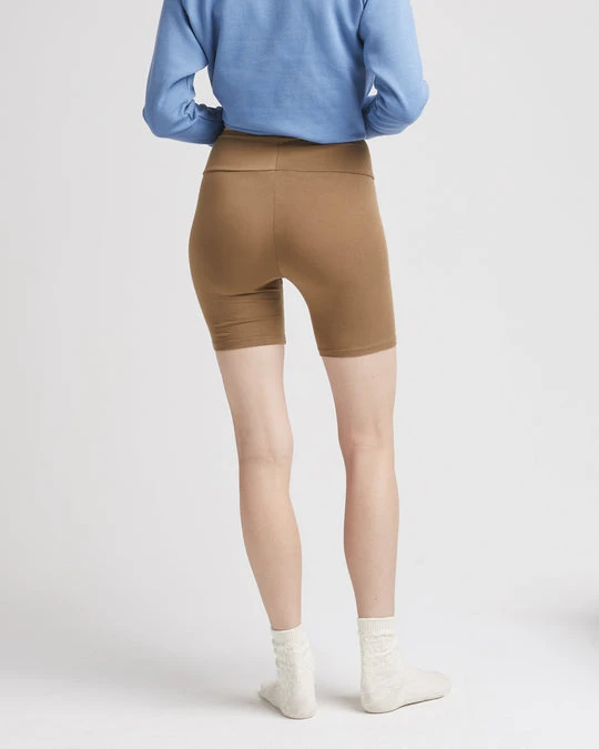 Richer Poorer lyocell high rise bike shorts in morning roast brown. Mid thigh length.