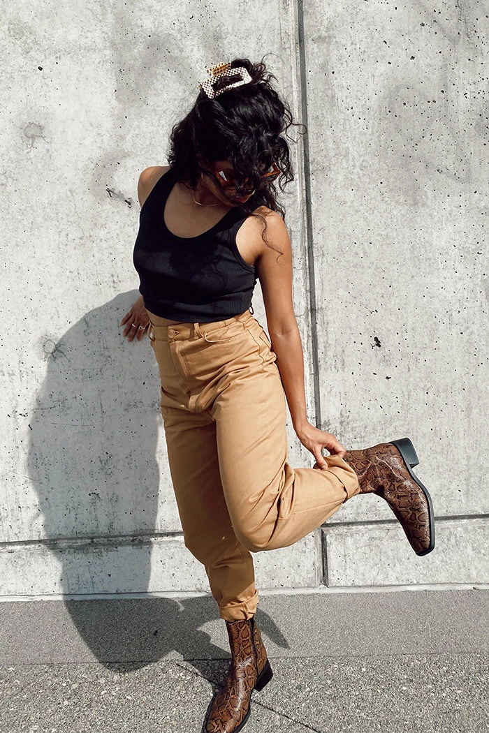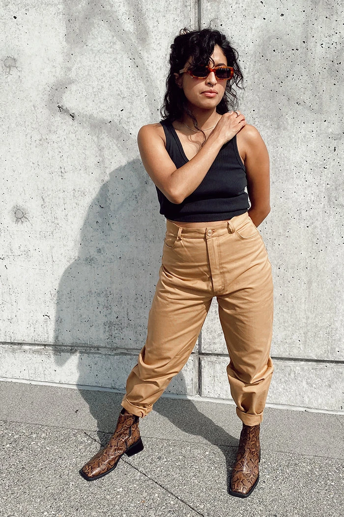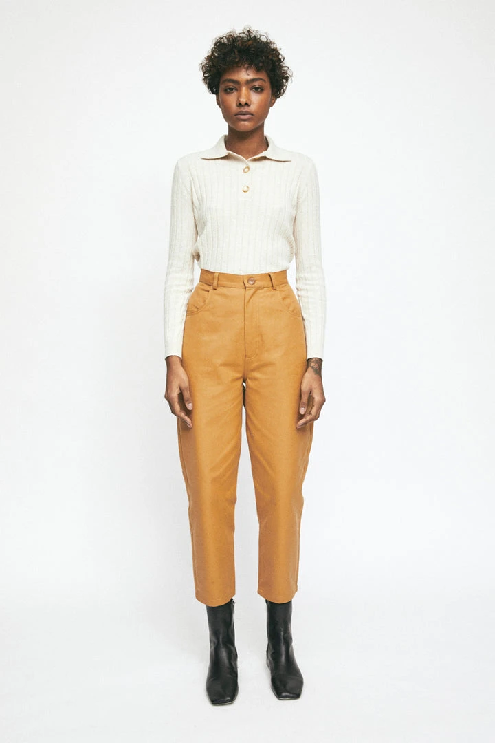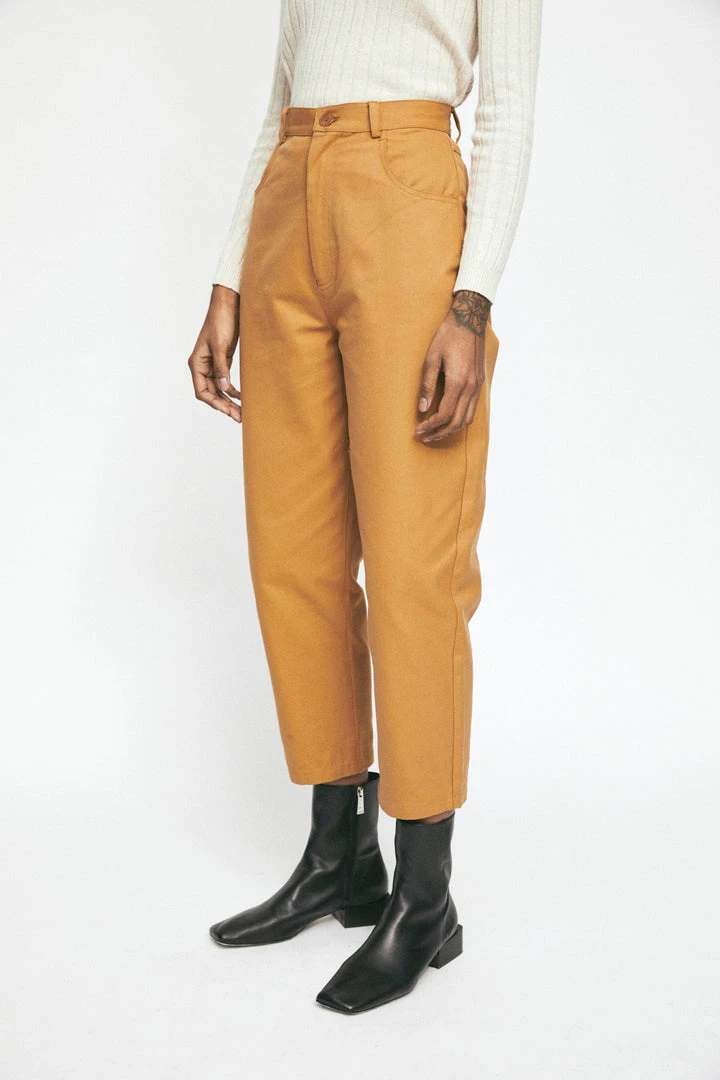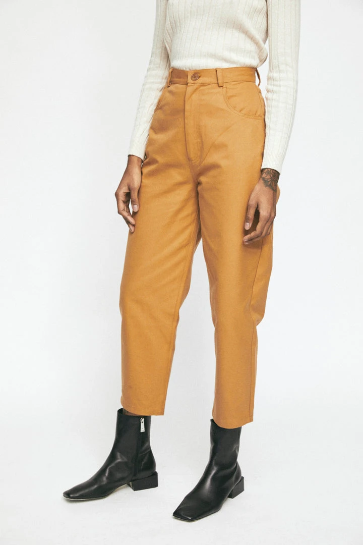 Rita Row Nogal high waisted trousers in mustard tan with seam detail down back center.Â