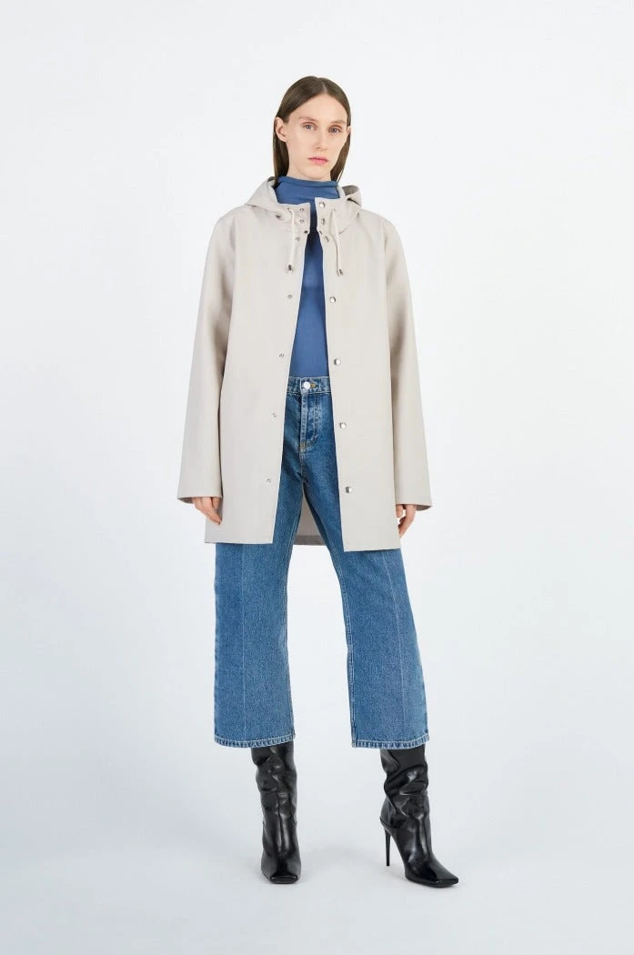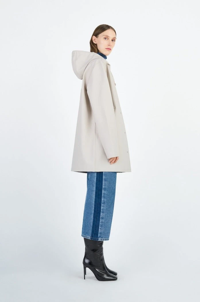 Stutterhiem Stockholm rain jacket in Light Sand has snap closure, drawstrings, and exemplifies both versatility and durability in its updated design. Using the finest craftsmanship materials and details, the Stockholm coat has undergone sever testing in horrible conditions both at sea and in the city. Each coat is individually quality-controlled and handmade by a skilled seamstress. See other colors in Stockholm style here, or check out the A-line Mosebacke style here.