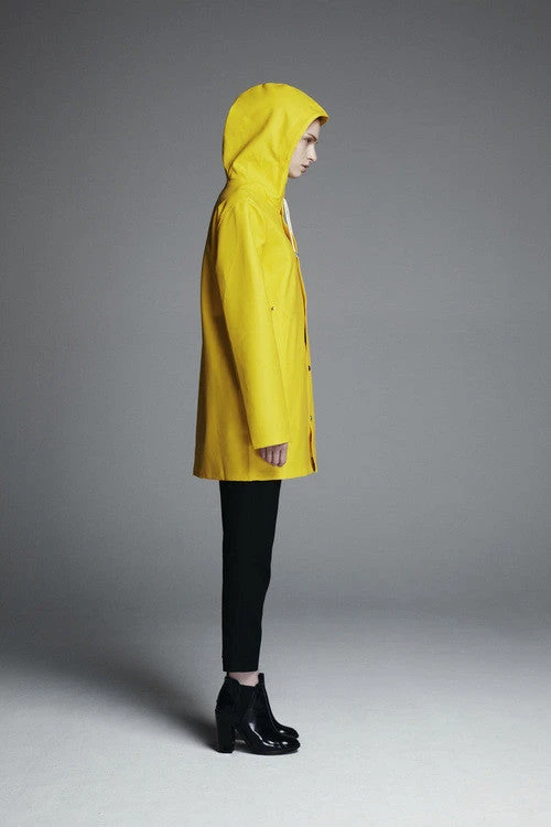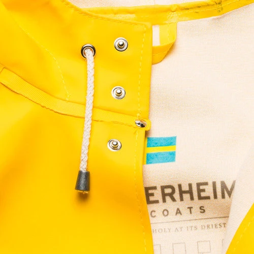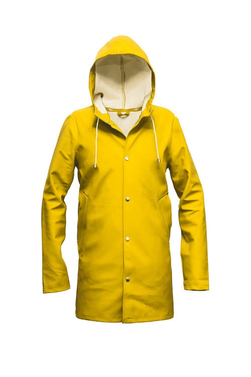 The Stockholm rain jacket has snap closure, drawstrings, and exemplifies both versatility and durability in its updated design. Using the finest craftsmanship materials and details, the Stockholm coat has undergone sever testing in horrible conditions both at sea and in the city. Each coat is individually quality-controlled and handmade by a skilled seamstress.Â