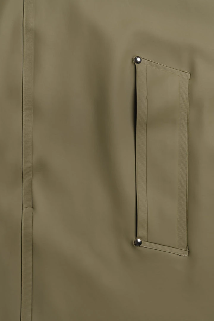 Mosebacke Long is constructed from our unique 380 gram rubberized-cotton with thermally welded seams for complete water and wind protection. The cotton & poly membrane is durable & supple, complemented by metal buttons and cotton drawstrings.