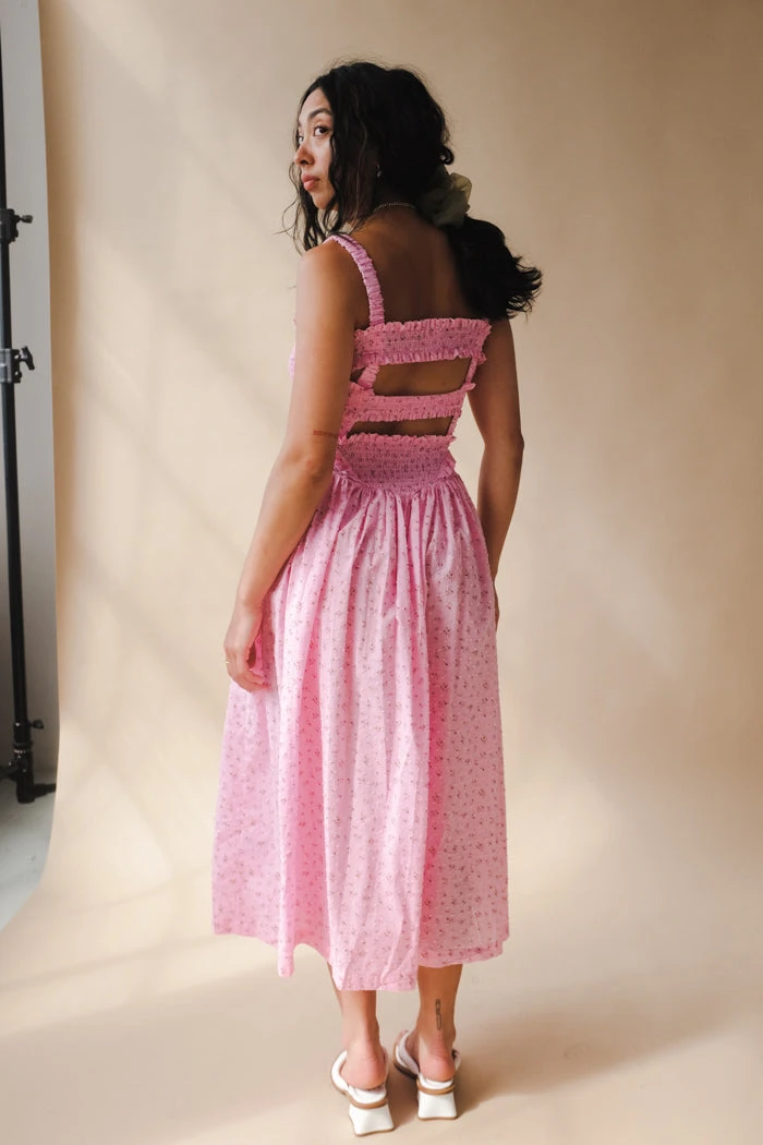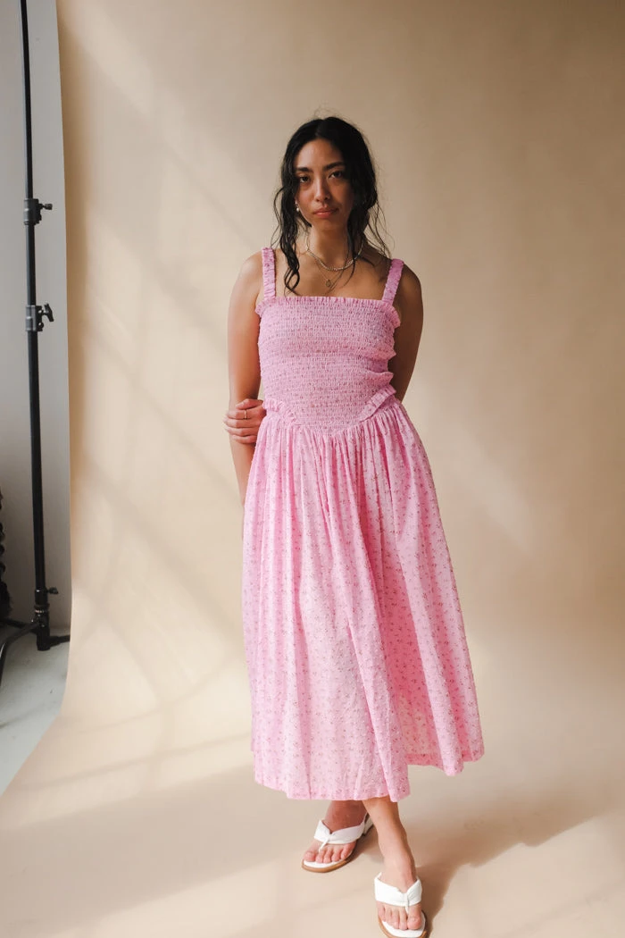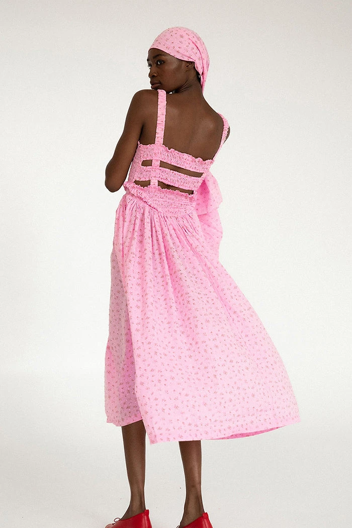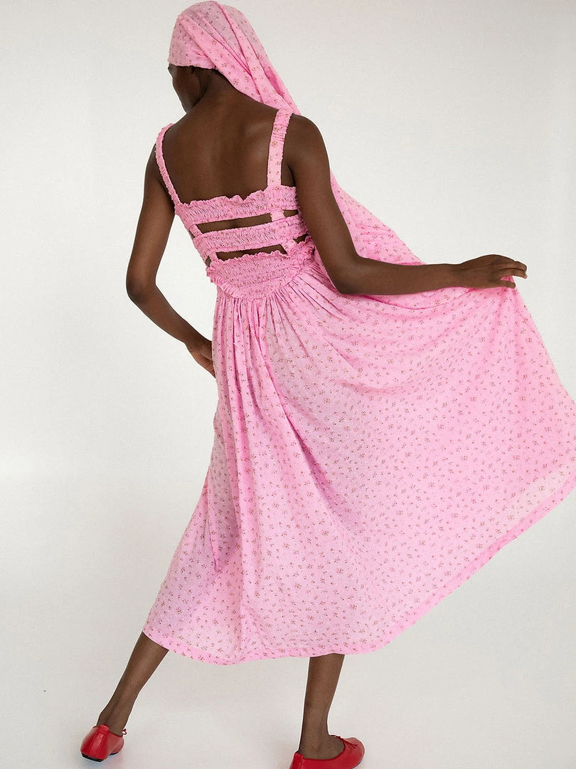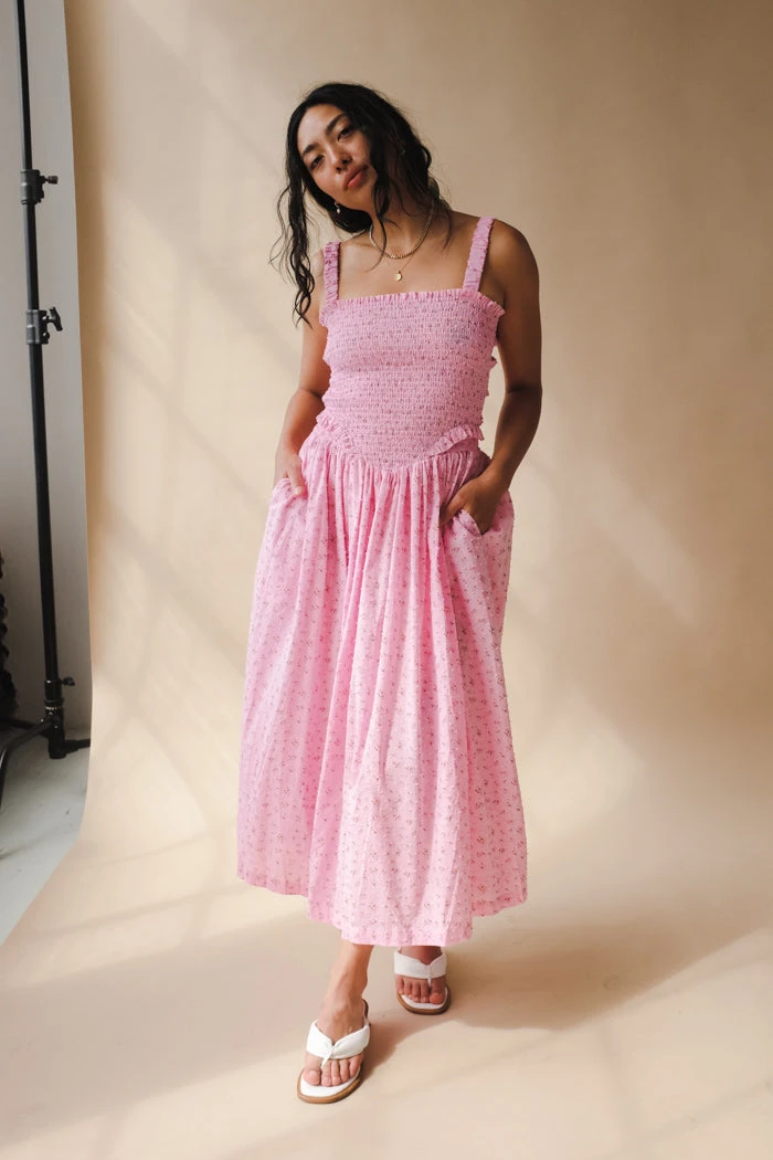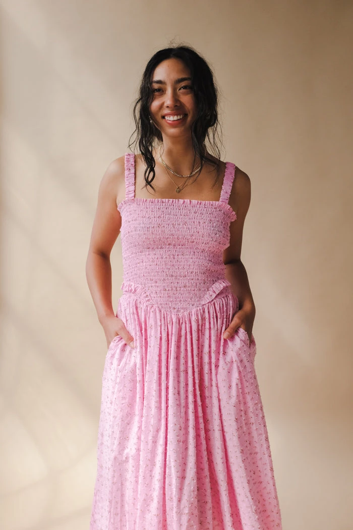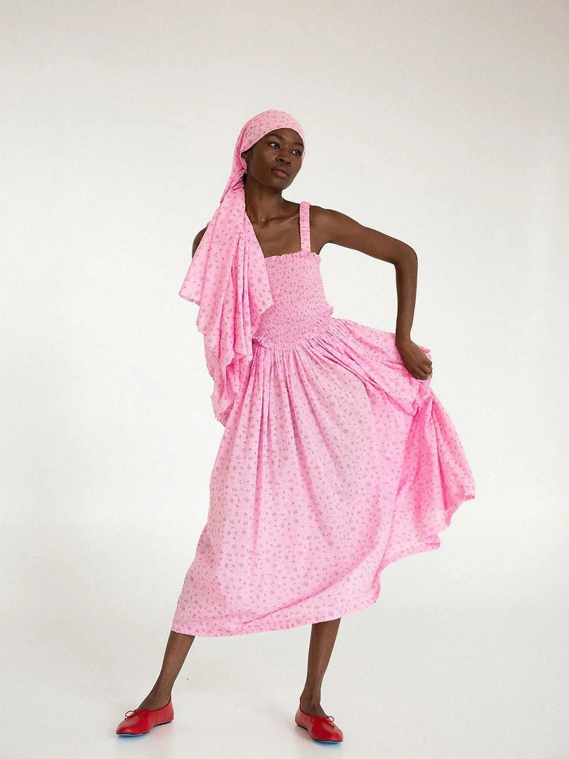 Tach floral cotton voile dress, hand smocked at the top ruffled details.
