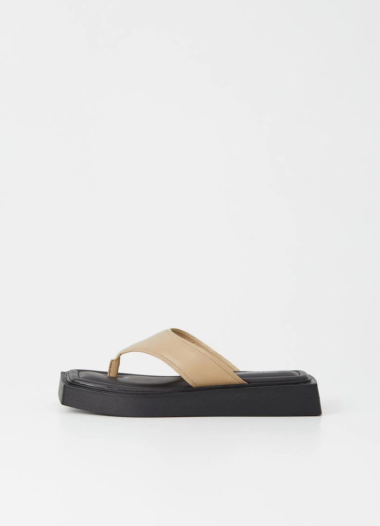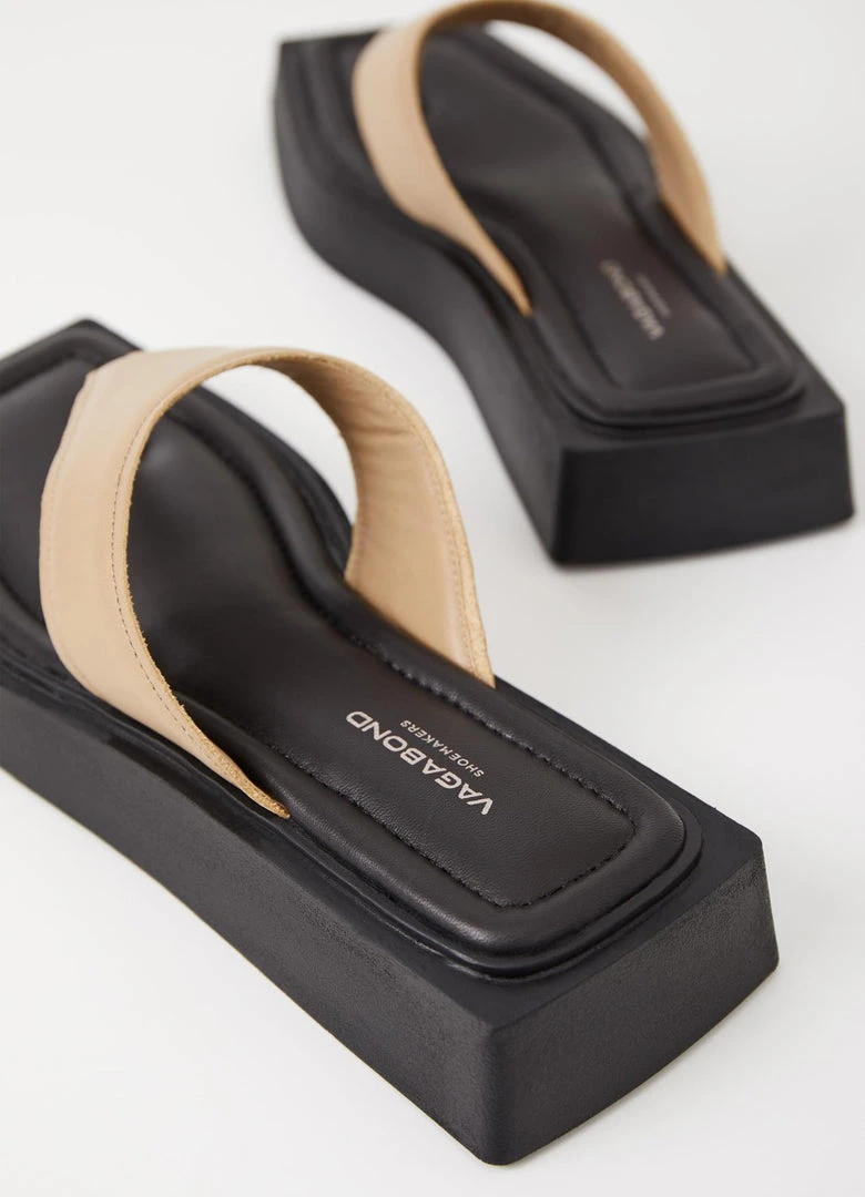 Vagabond Evy square toe, platform flip flops in lark tan.
