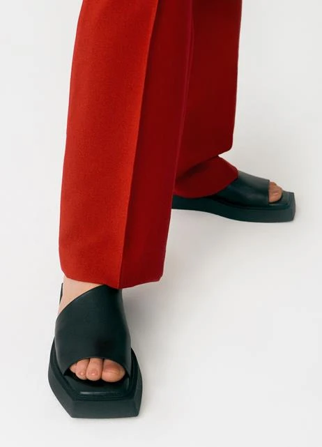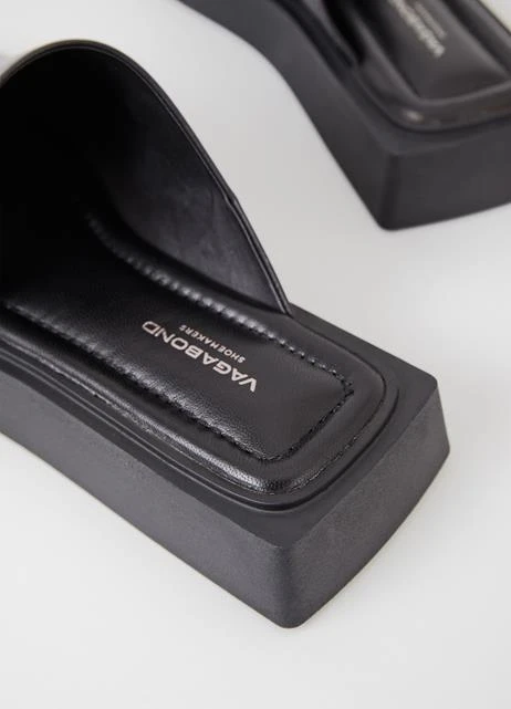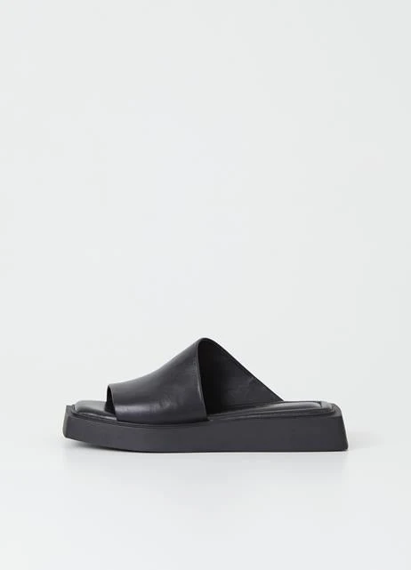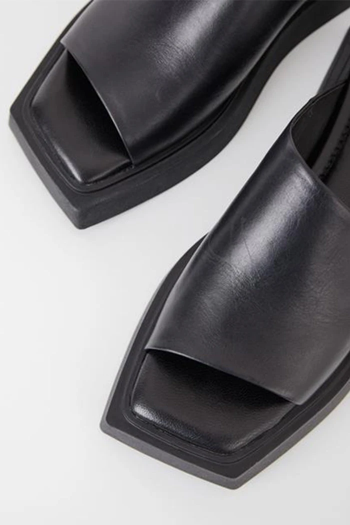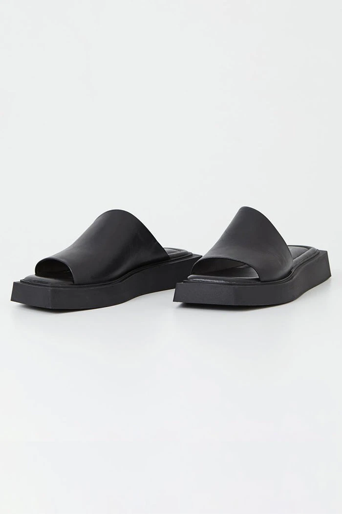Vagabond asymmetric Evy slides are the edgy slip-in sandals with a minimal design and sharp square toes in black.