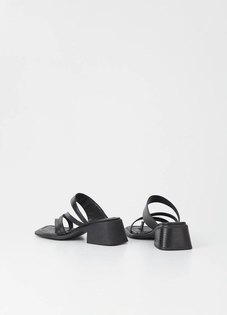 Vagabond Ines strappy slip on sandal with subtle square toes in black leather.