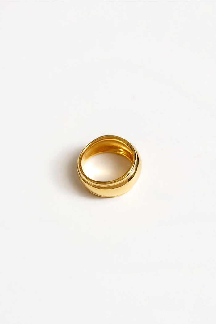 Wolf Circus Anita ring. 14k gold-plated bronze wavy wide band with border.