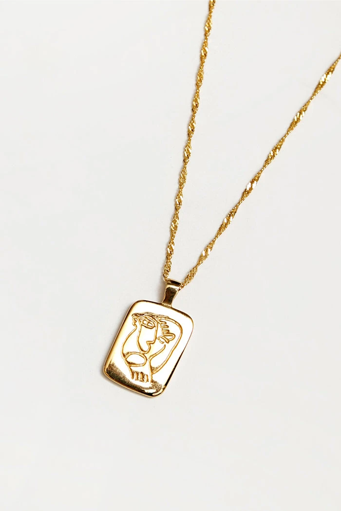 Wolf Circus Bronte face pendant necklace in gold. “Full Expression of Ourselves” why color ourselves dull when we have so much life and love to give. Be your authentic self in full saturation.