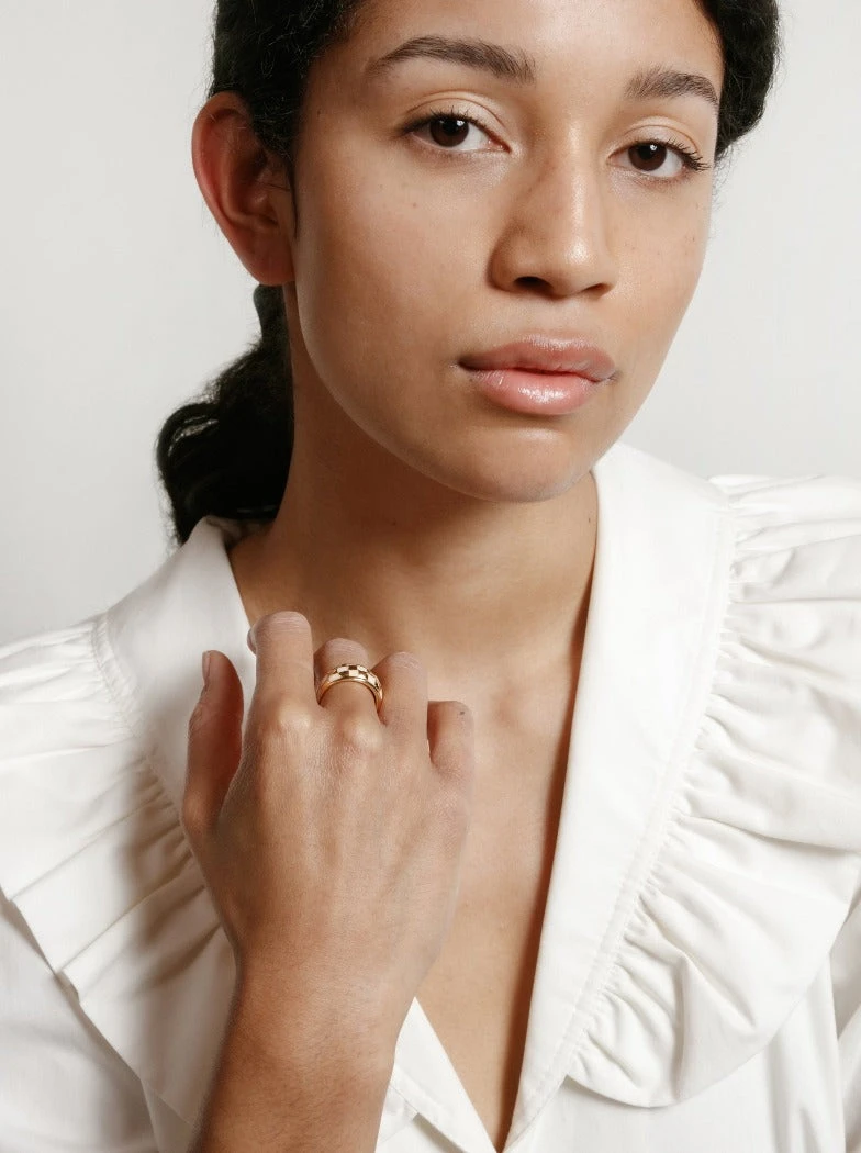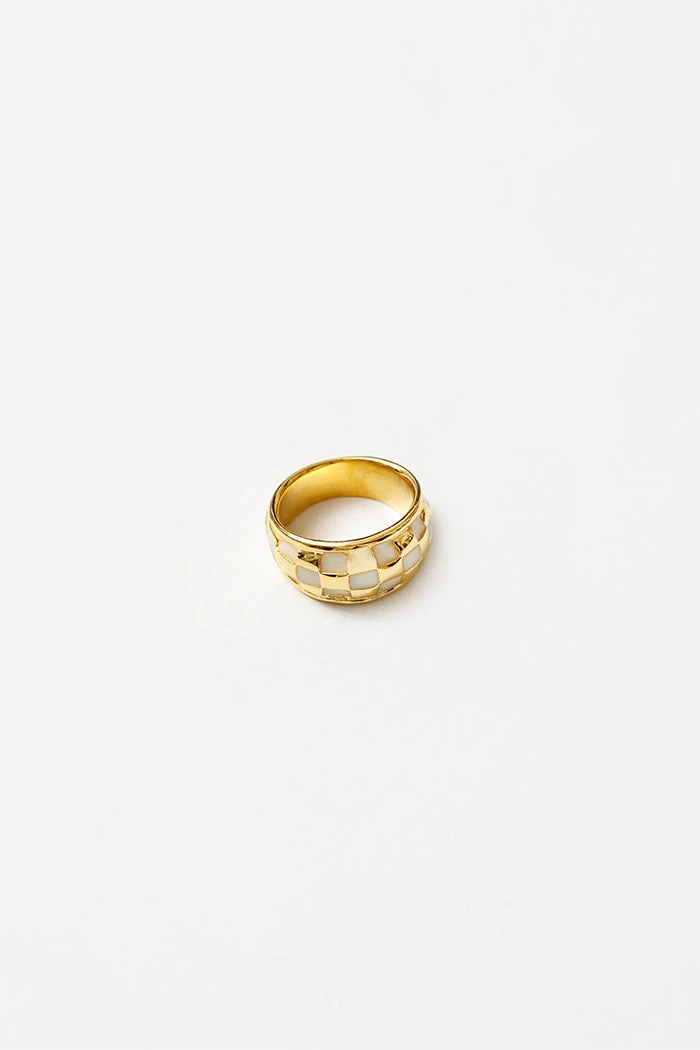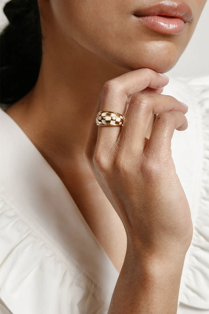 14k gold-plated bronze ring with cream resin. 12mm at widest point