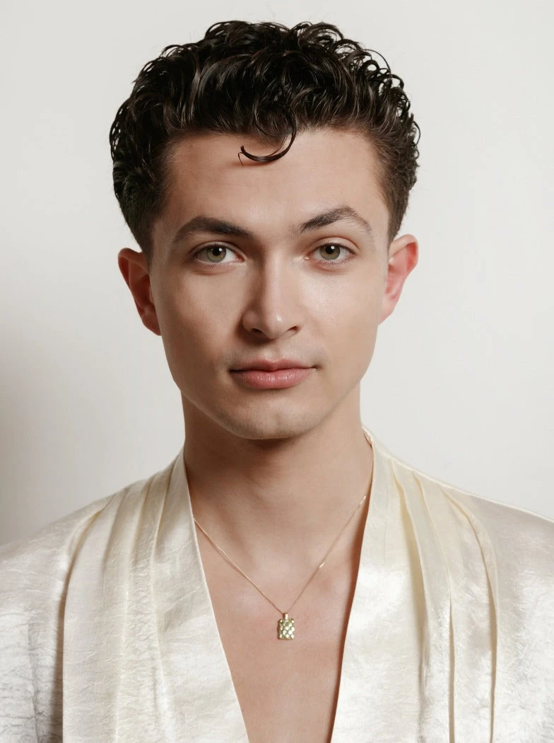 Wolf Circus Penny rectangular checkered pendant necklace with green and gold checkered pattern.