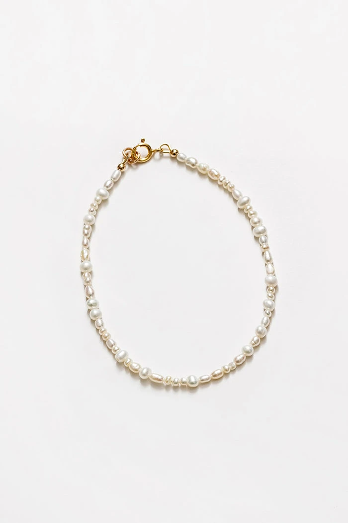 Wolf Circus Renata small freshwater pearl anklet with gold-filled clasp.