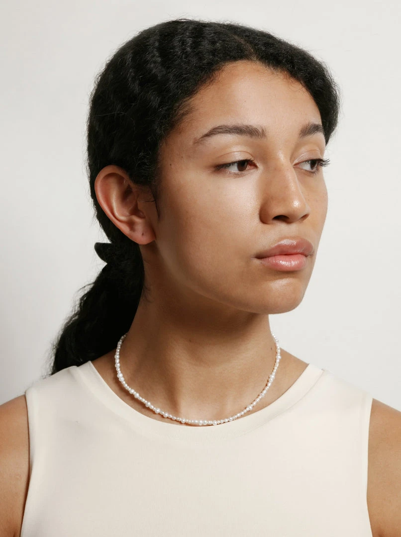 Small freshwater pearl necklace with gold-filled lobster clasp. Available in 16” and 18”